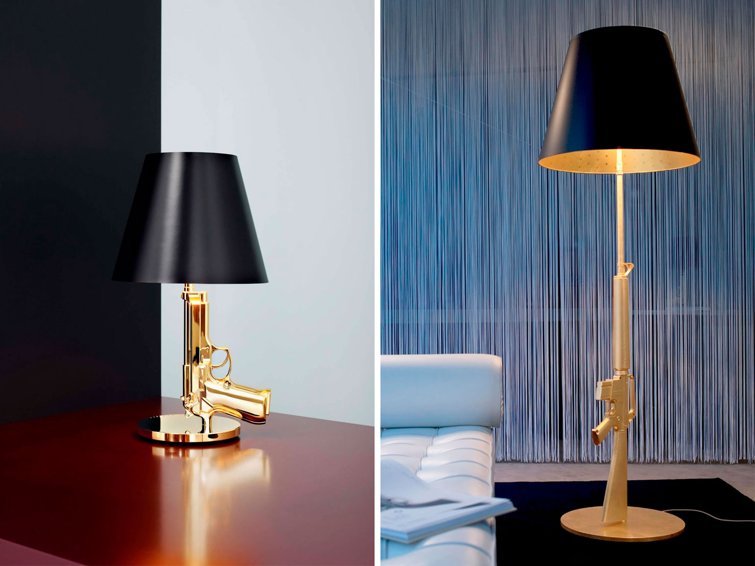 Дизайнер обожает не только демократичность, но и провокации — поэтому в 2005 году он создал знаменитую коллекцию светильников для итальянского бренда Flos. Торшеры, прототипами для которых стали автоматические винтовки М16, произвели настоящий фурор. Пистолеты и винтовки покрыты 18-каратным золотом.
