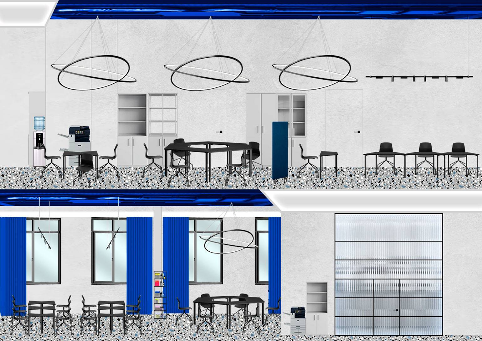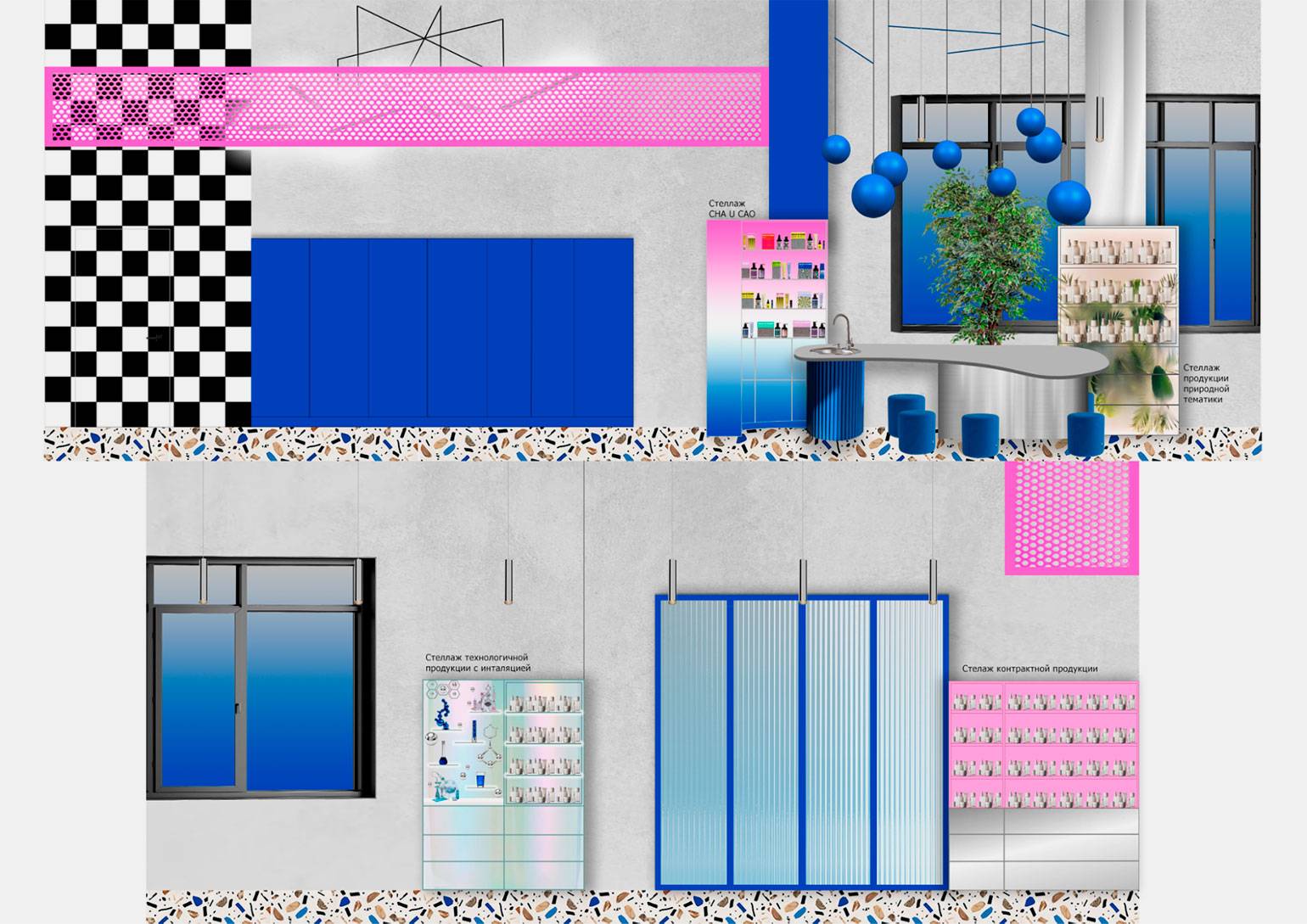 — Косметический завод NUOLAB — он запускает производство в Москве. Заказчик хотел на конкурсной основе вместе с молодыми дизайнерами оформить офисные помещения, зоны отдыха и опенспейс для сотрудников. Всего было 26 участников. ТЗ оказалось довольно подробным — заказчик чётко представлял, где и что должно располагаться. По сути, дизайнеру оставалось предложить интересную, необычную концепцию.