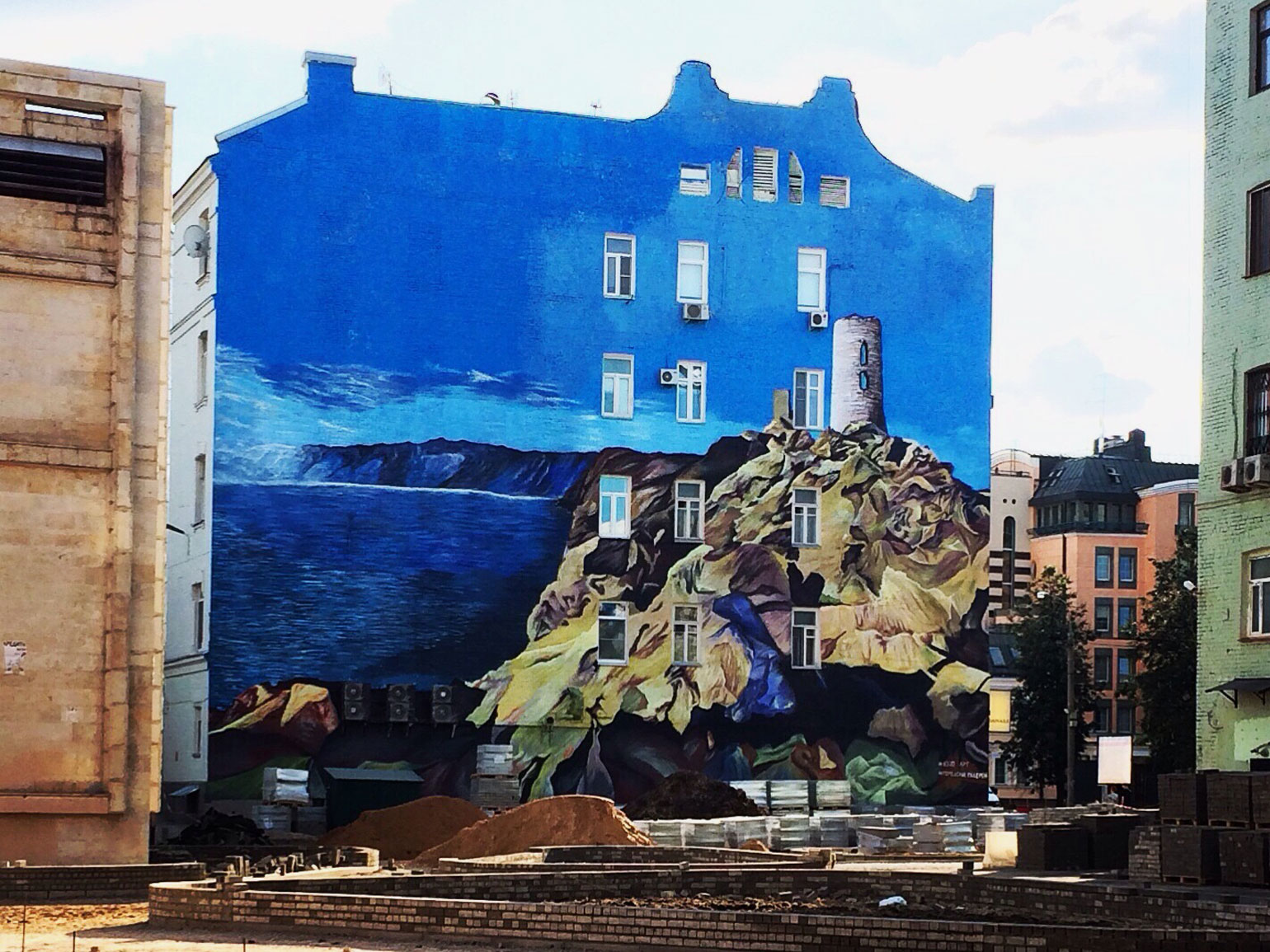 Нам дали разрешение на создание мурала. И вслед за первым проектом полетели заказы. Несколько лет мы активно рисовали, я даже получил лицензию промышленного альпиниста и реализовал мурал в десять этажей с верёвок.
