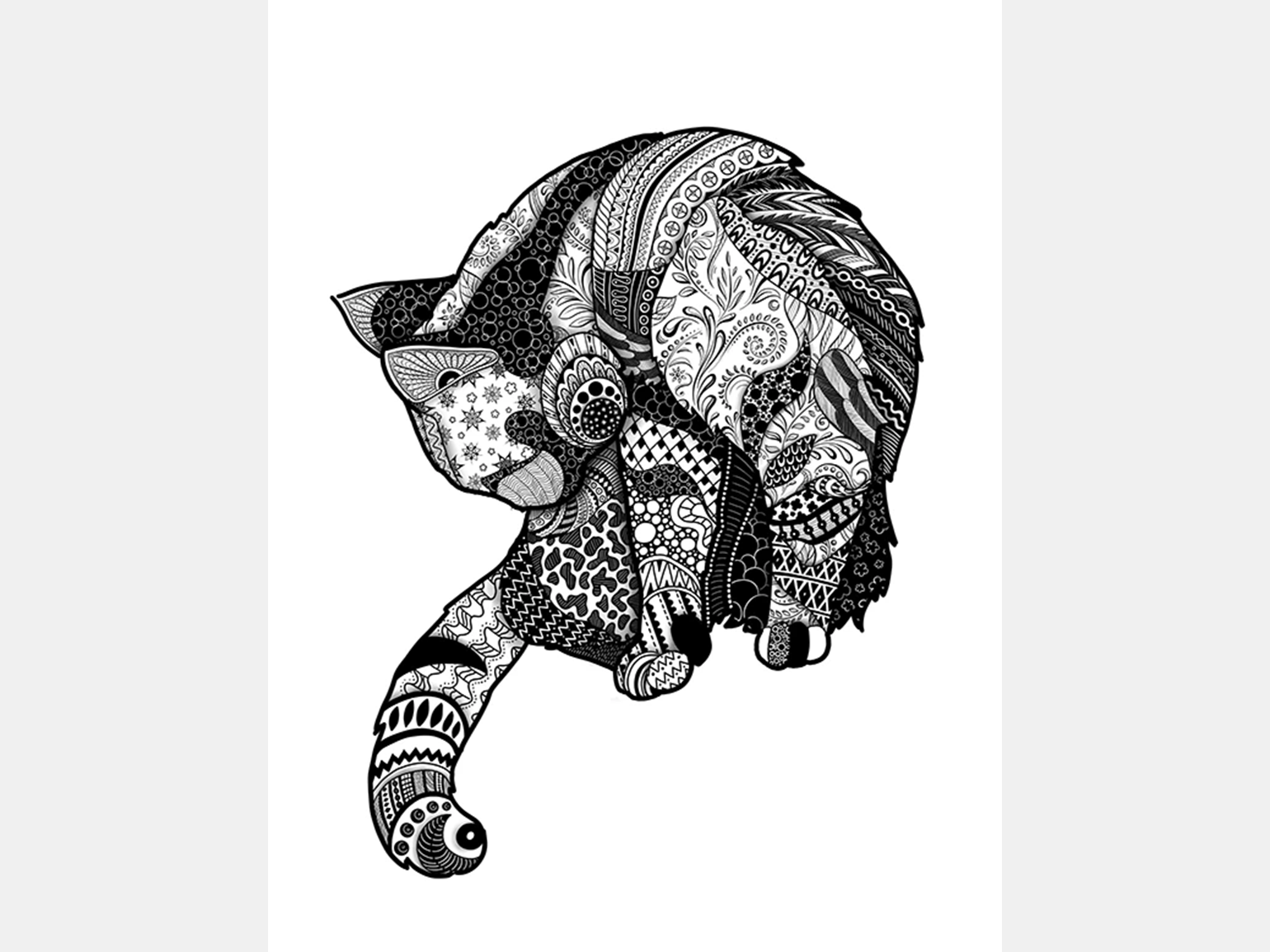 Насчёт зентанглов — я сначала просто нарисовала свою кошку, сидящую на диване, а потом решила попробовать нарисовать её же в технике зентангл. Меня очень увлекло и расслабило это занятие, и очень понравился результат. В итоге я просто так нарисовала серию животных в этом стиле.