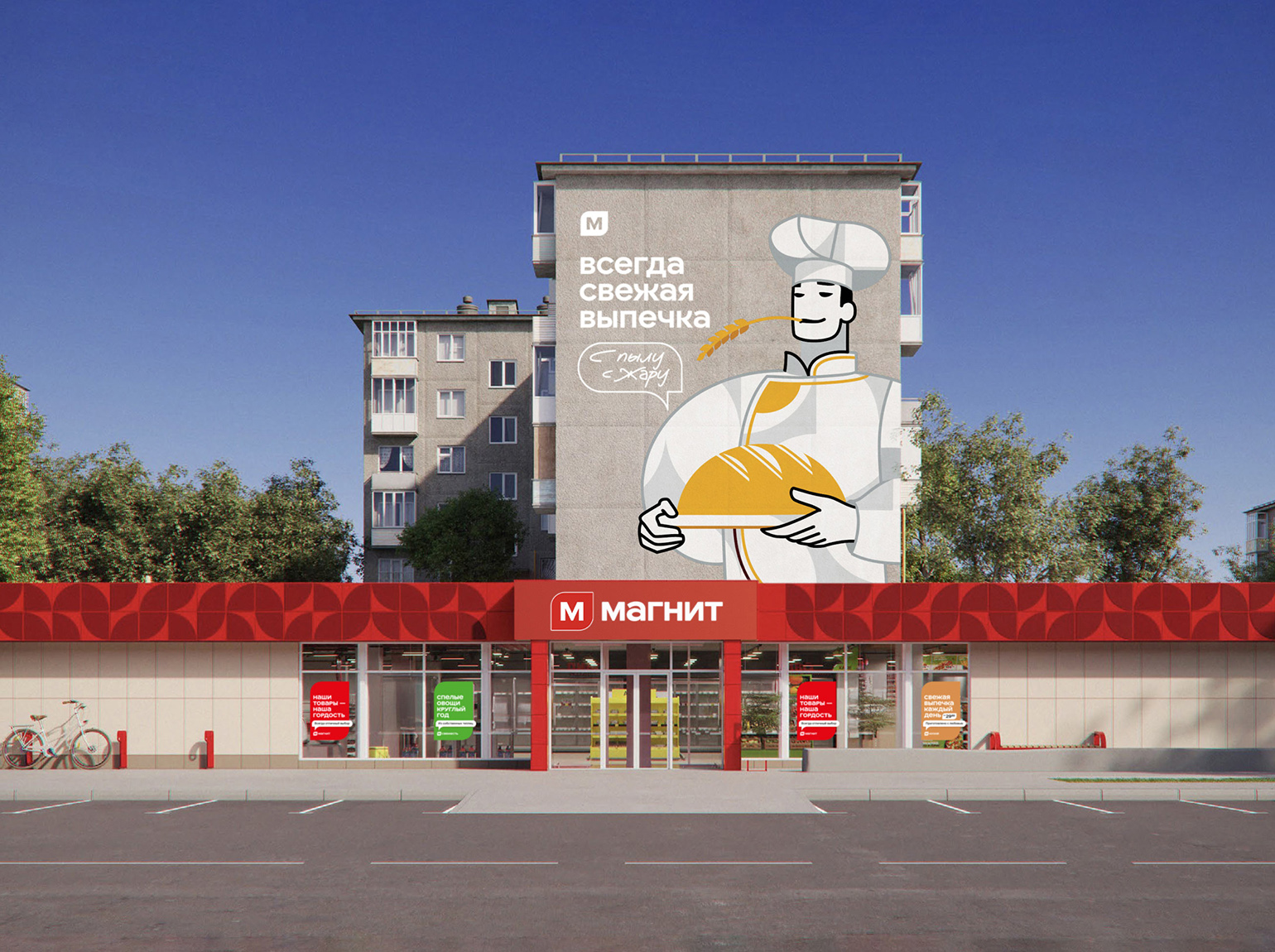 Учитывая широкую географию сети, в студии проработали буквы башкирского, татарского, чувашского, марийского, удмуртского и коми-зырянского алфавитов. Логотип и индивидуальный шрифт теперь используются на вывесках, в интерьерах, в навигации и в рекламе всех супермаркетов.