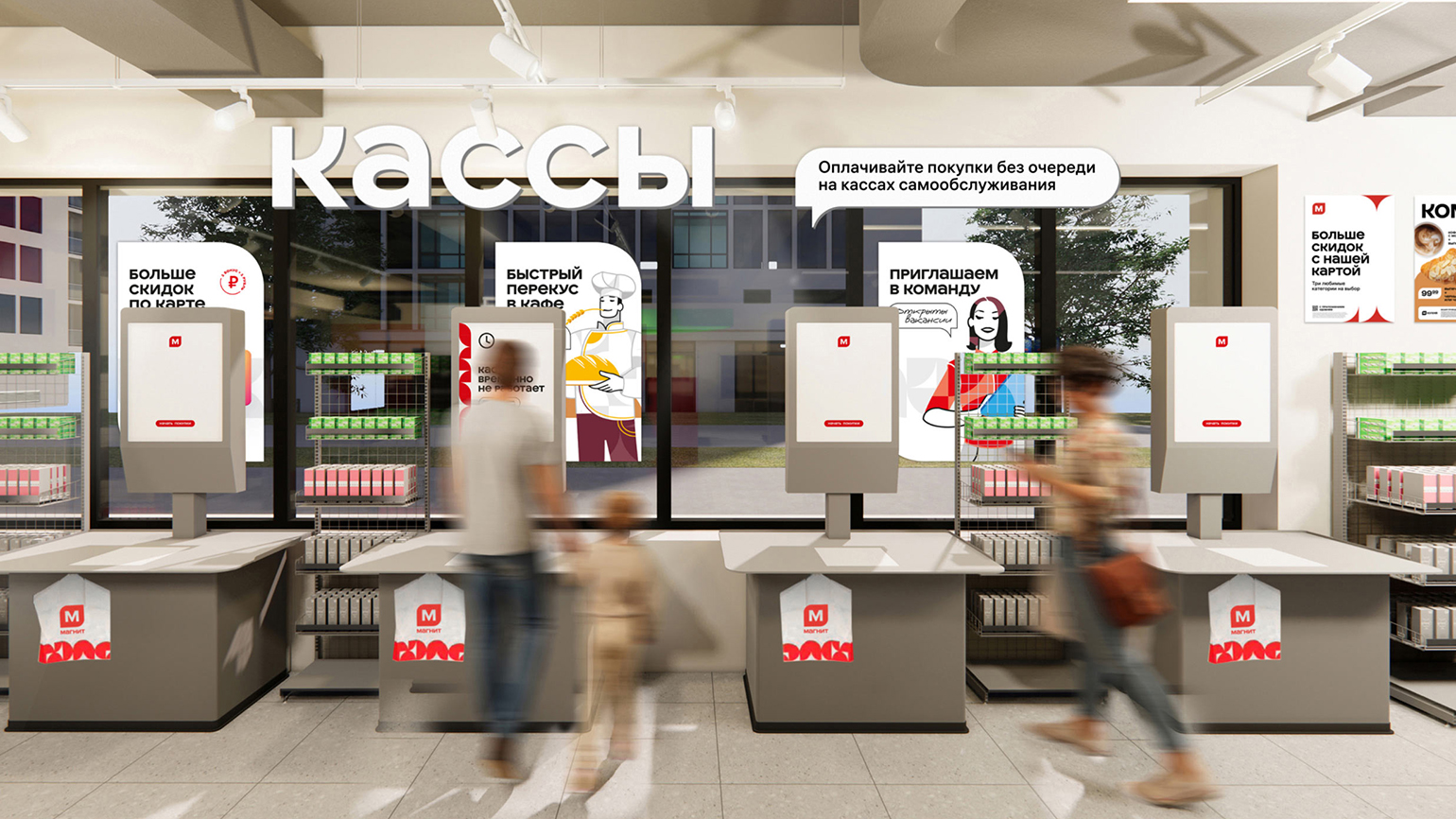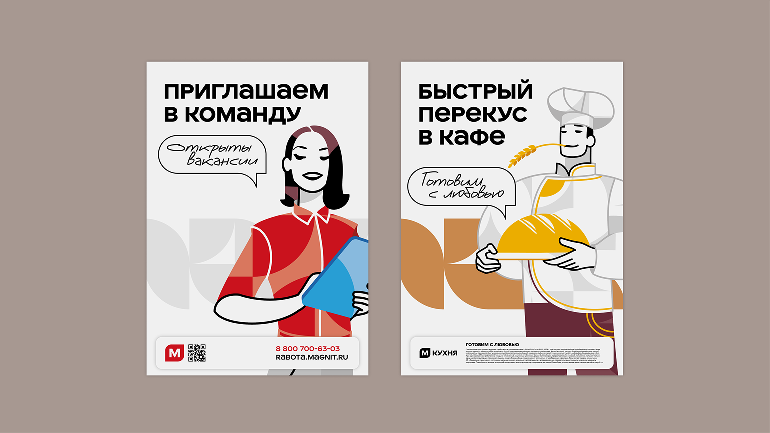 Для всей сети в студии разработали шрифт «Магнитус» — читабельный неогротеск с мягкими формами и деталями. Он работает как в навигации, так и на рекламных носителях, а мягкие округлые кириллические буквы передают открытость и «широту русской натуры». У прописных А и Е в шрифте необычное начертание для большей выразительности.