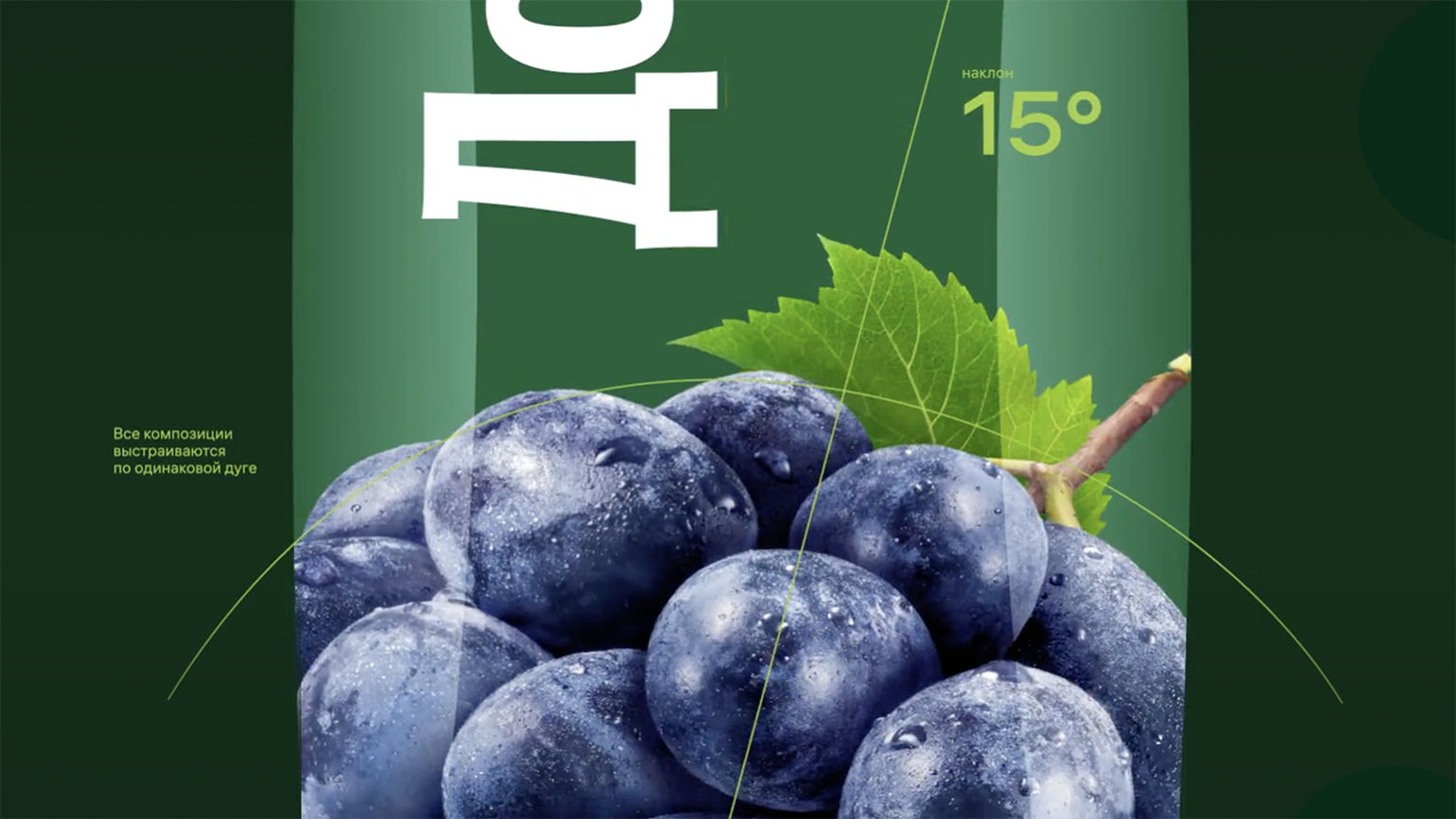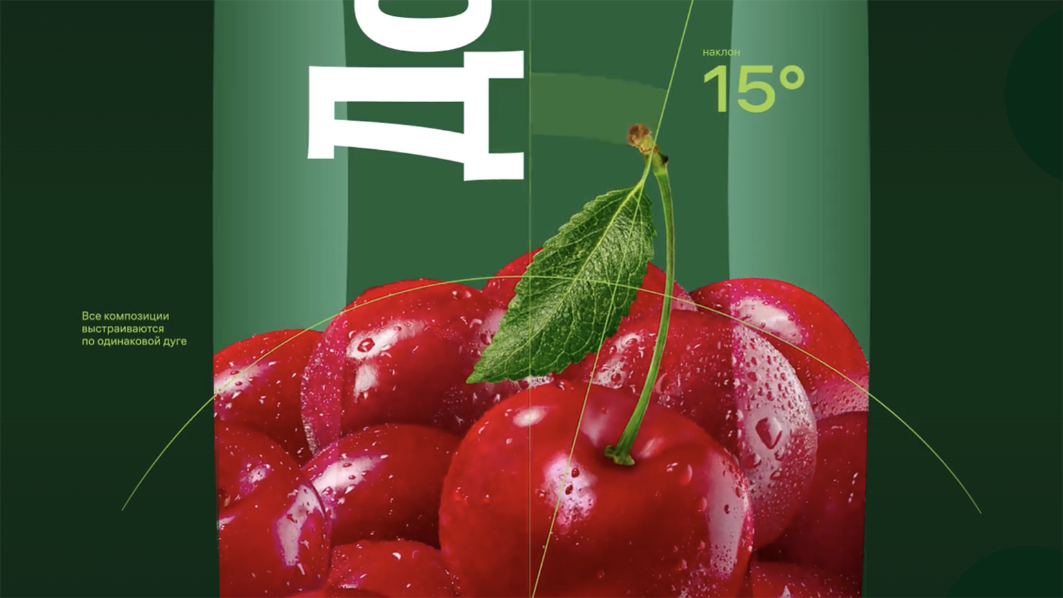Логотип остался ключевым элементом оформления, но его масштаб, расположение и ориентация теперь варьируются в зависимости от формата упаковки. А в центре композиции изображения фруктов и ягод крупным планом.