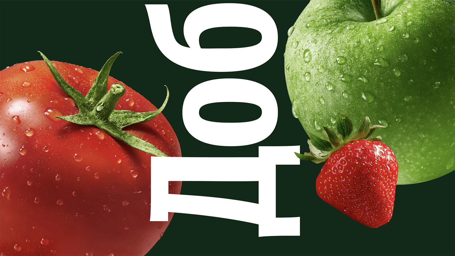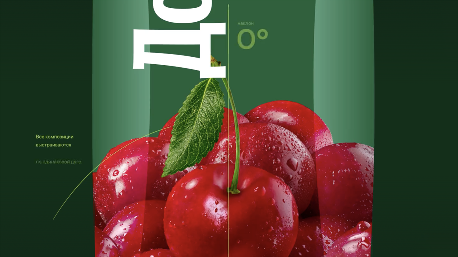 Айдентика строится на гиперреалистичных изображениях фруктов и ягод.В блоке характеристик на упаковке упор сделали на числовые показатели — так информация воспринимается «компактнее».