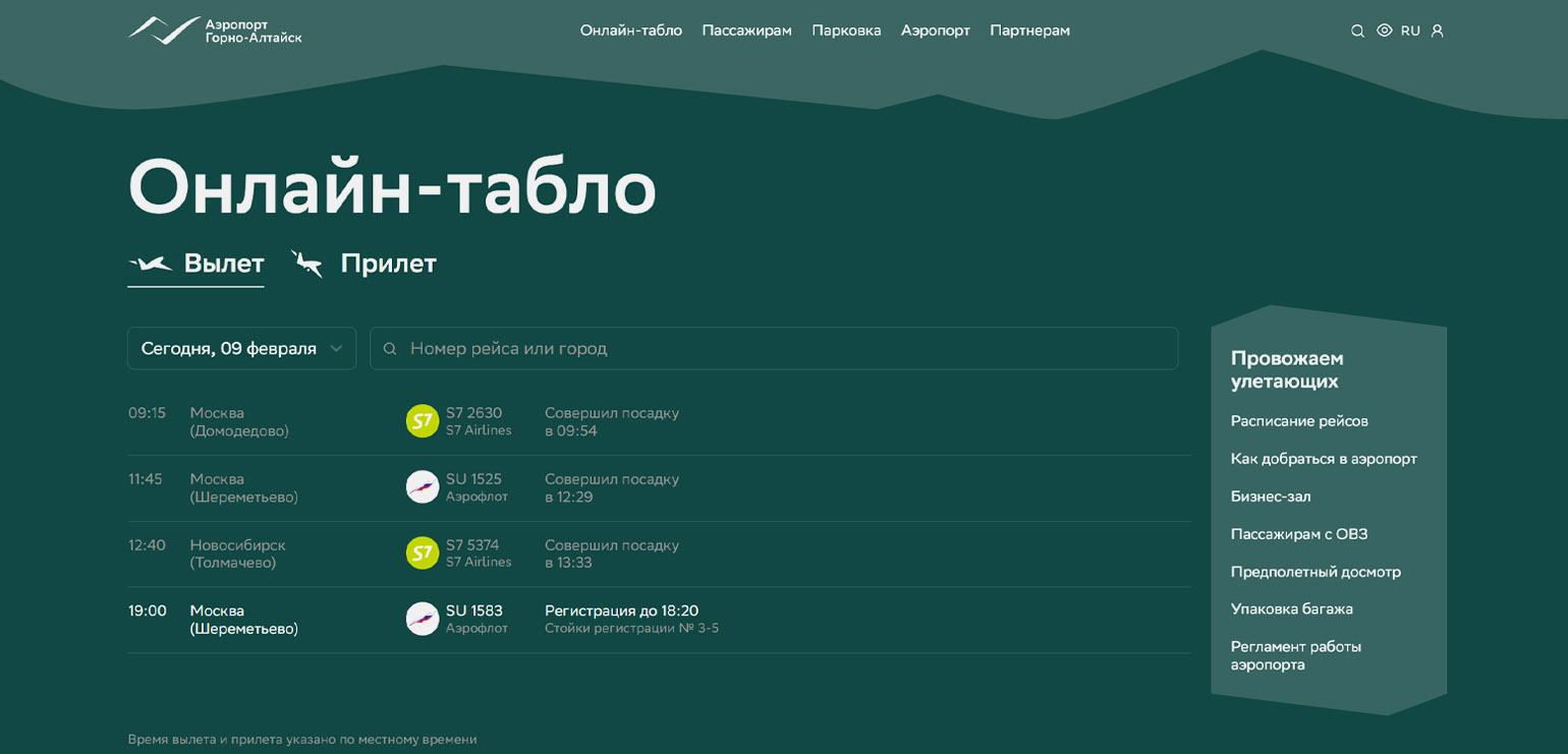Студия Артемия Лебедева создала дизайн для сайта аэропорта города Горно-Алтайск