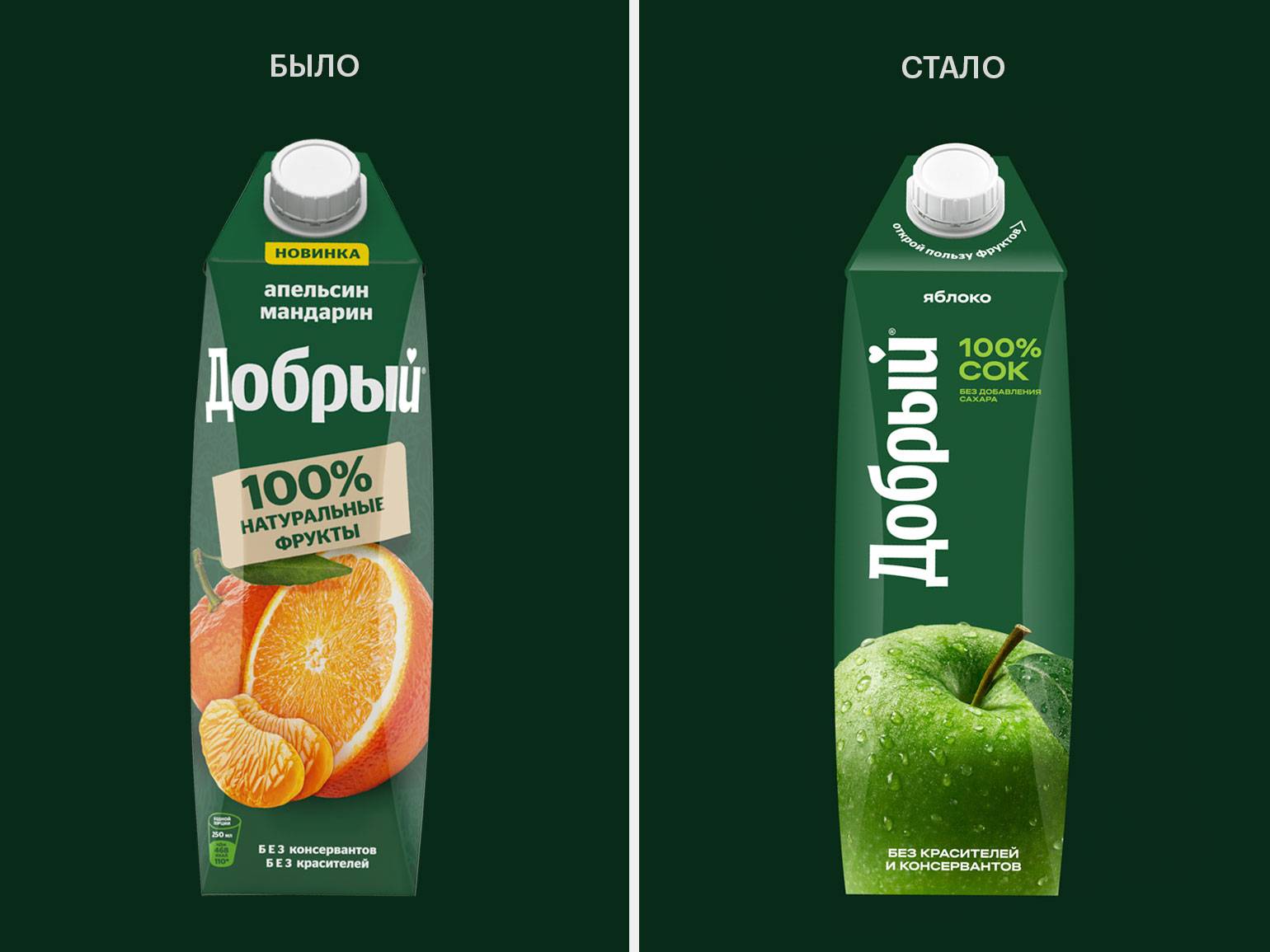 Талли Кельми: На упаковке важно крупно дать информацию о том, что находится внутри (здесь это фрукт крупным планом), с помощью цвета сообщить категорию («пищевой» зелёный воспринимается как природный и полезный), а также проработать маркетинговый слой. Новый дизайн создан по каноническим правилам и поэтому выглядит привлекательно и логично.