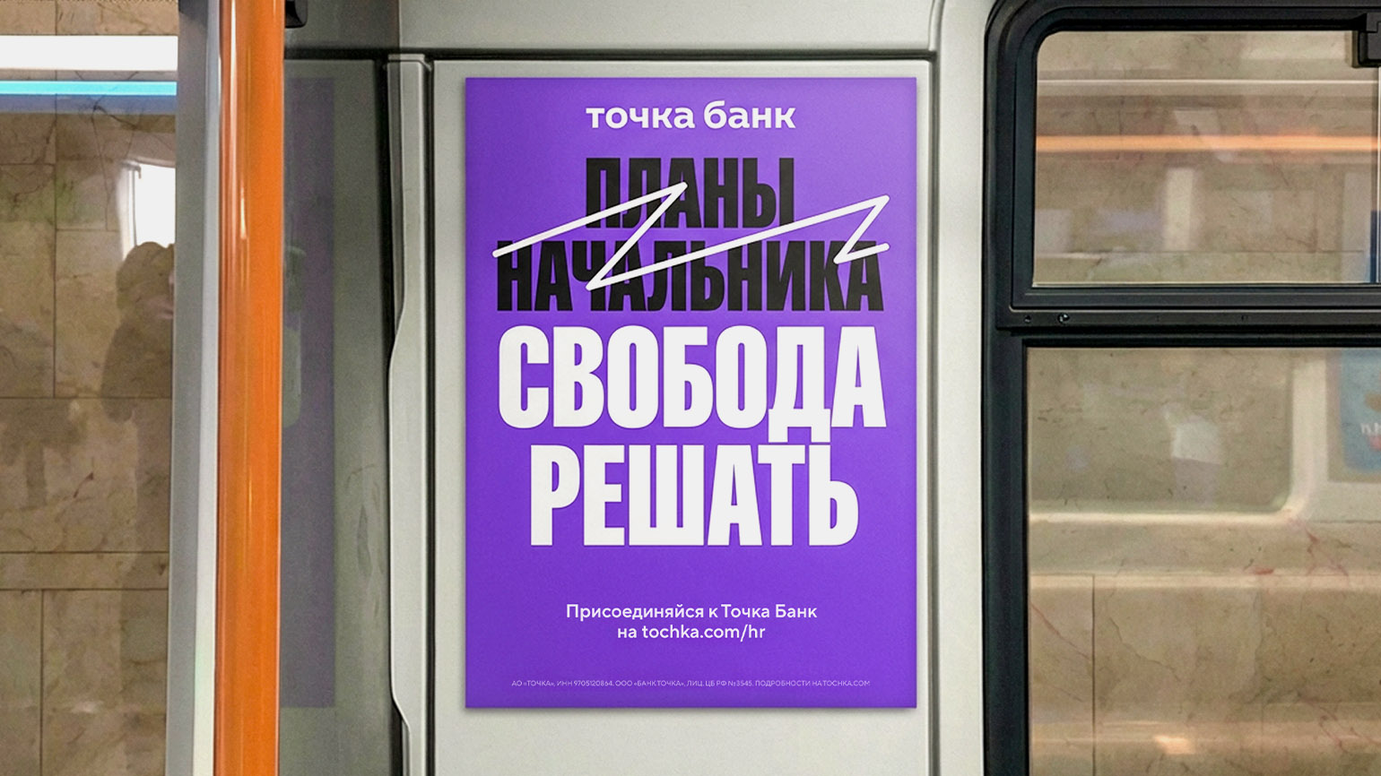 В основе айдентики шрифт ABC Gravity Compressed в заголовках — для акцента и динамики — и шрифт Tochka Script, созданный на основе почерка сотрудницы банка и заимствованный из основного фирстиля. А ещё приёмы зачёркивания, контрастные композиции и экспрессивные объёмные иллюстрации.