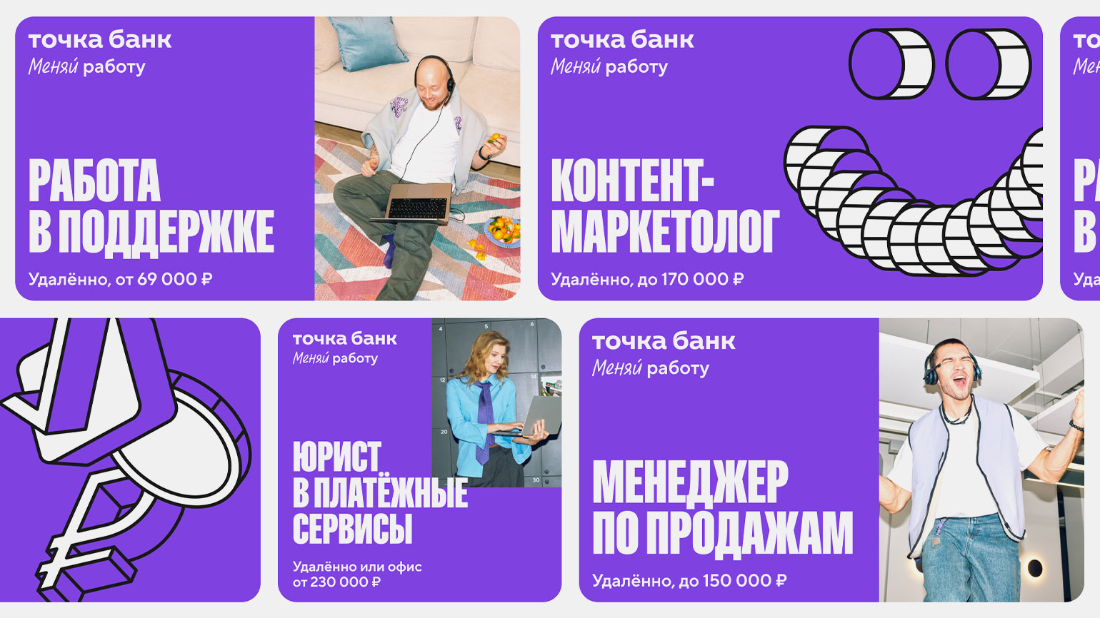 Чтобы сделать коммуникацию более точной и выразительной, в банке разработали отдельный фирменный стиль для HR-направления. Новая айдентика построена вокруг идеи действия и фокуса на результате. Она получилась без излишней инфантильности и визуального шума.