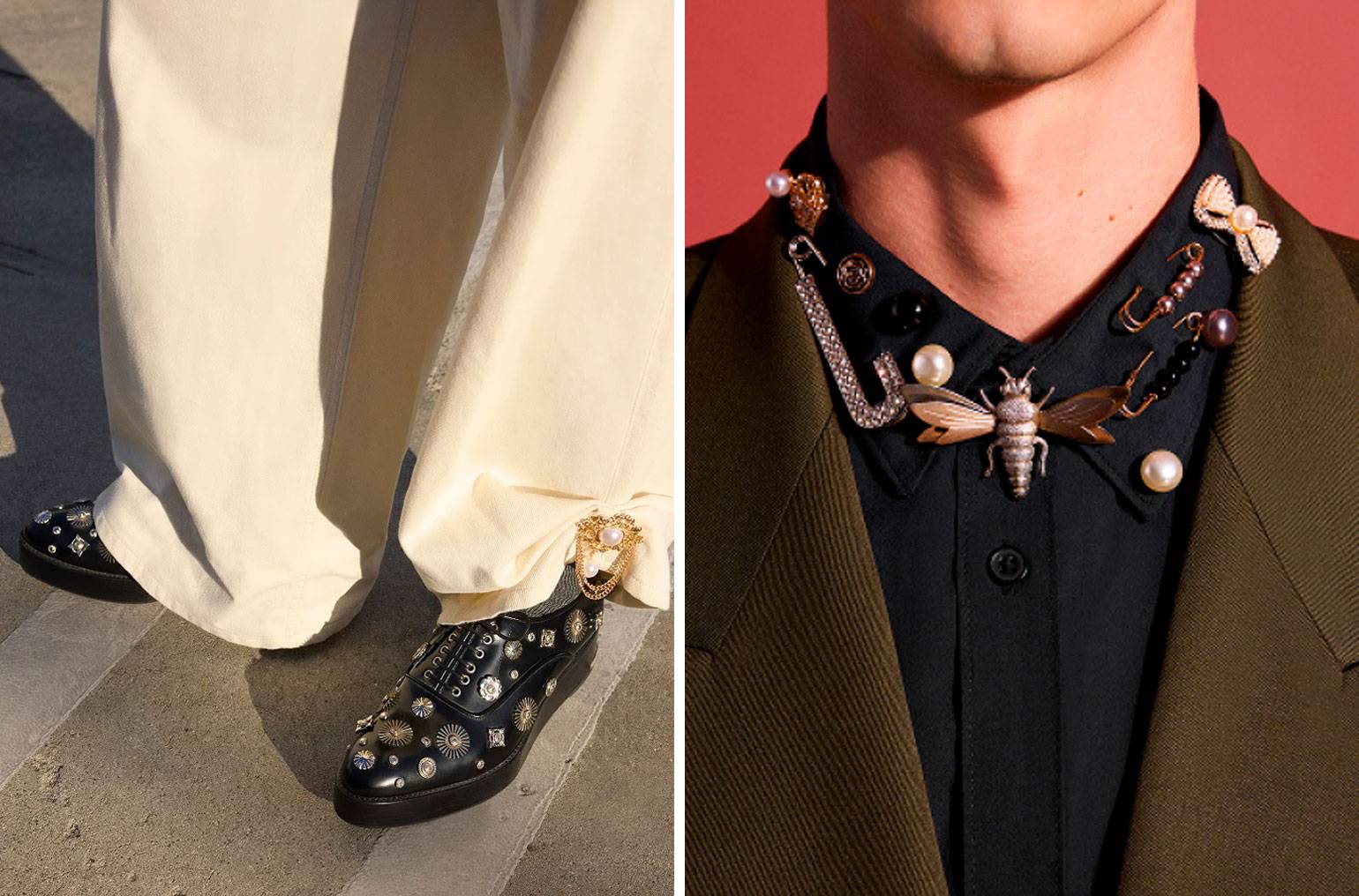 Появился новый способ выразить свои чувства на рукаве. Или на галстуке. Или на носках. Это отчасти дань уважения, отчасти переосмысление. Но в тренде явно максимализм и ретро. А значит, снова актуальны поиски украшений в антикварных магазинах и на барахолках.