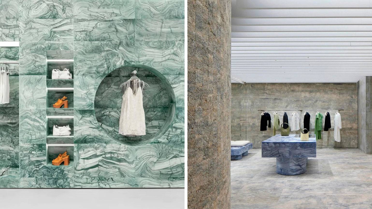 Пример — Plasticiet. Студия создаёт материалы из переработанного поликарбоната. Их панели выглядят как перламутр, мрамор или смола и применяются в проектах магазинов Bershka и Jil Sander архитектурных студий OMA и Casper Mueller Kneer. Переработанный пластик становится не заменой первичного, а новым декоративным языком.