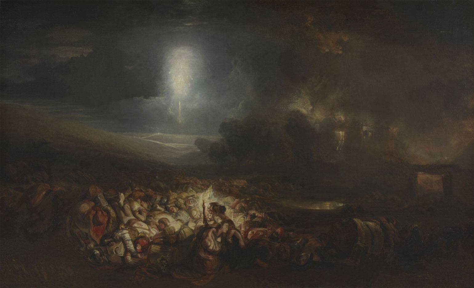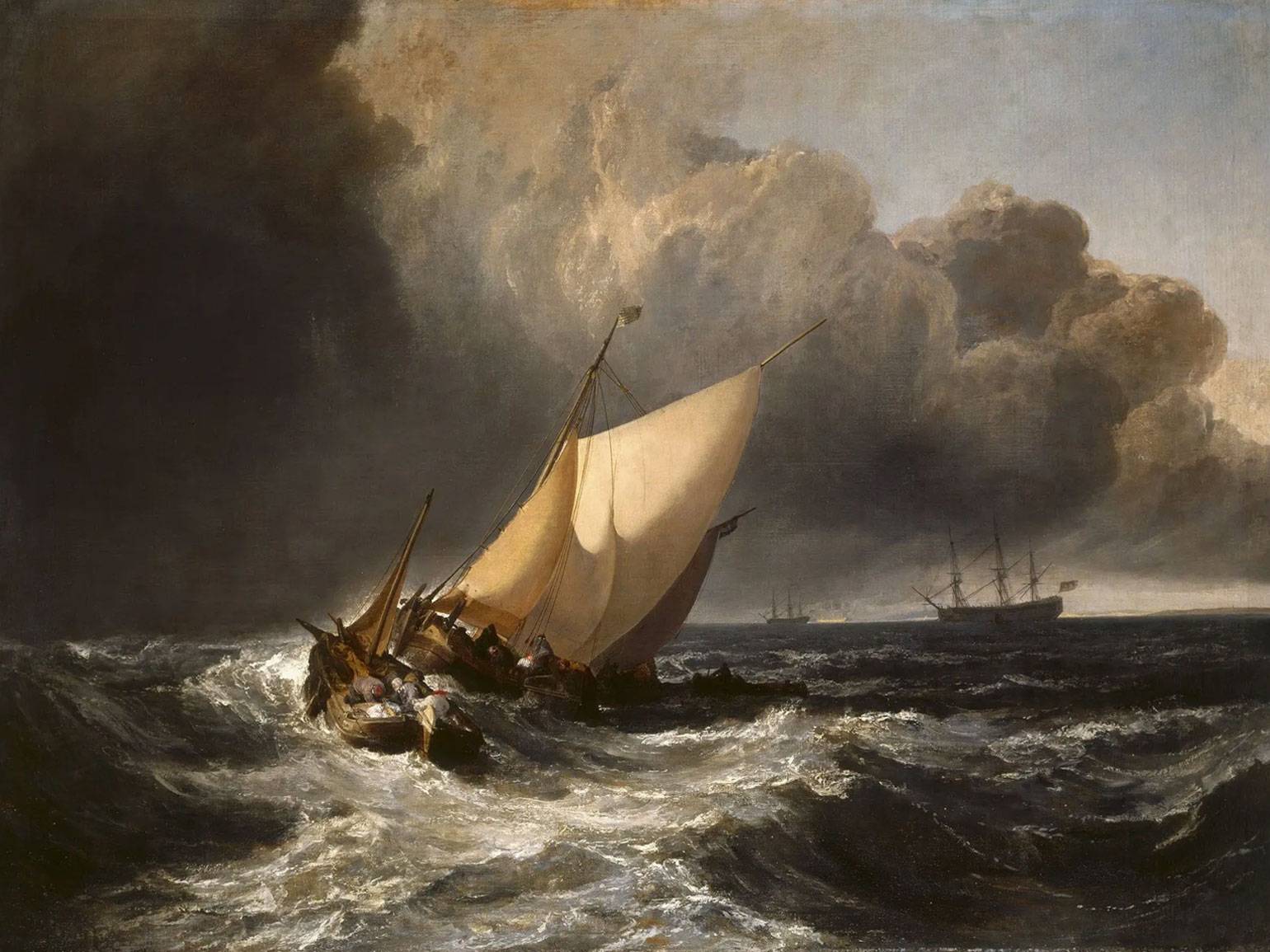 У Тёрнера появляются первые богатые заказчики. Для готического дворца лорда Бэкфорда он пишет картину «Пятая казнь египетская», а для герцога Бриджуотера — «Голландские рыболовные лодки во время шторма» (в пару к полотну «Восстающее море» кисти Виллема ван де Вельде Младшего из коллекции герцога).