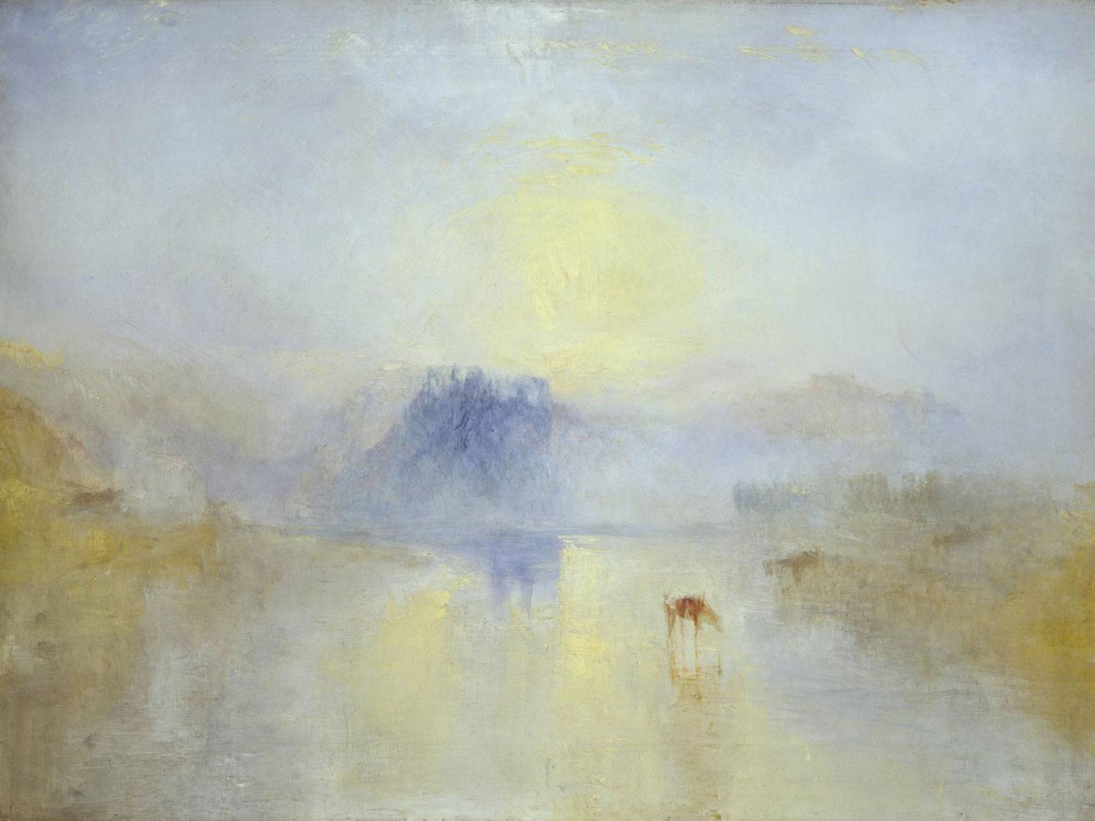 Одного этого полотна уже было бы достаточно для столь зрелого мастера, как Тёрнер, но в свой семидесятилетний юбилей, в 1845 году, он движется дальше и пишет картину «Замок Норхэм, восход солнца». Реальность под лучами палящего солнца настолько видоизменяется, что зритель едва может различить фигуры животных и голубых скал. Живопись всё ещё фигуративная, но всего в шаге от того, чтобы стать чистой абстракцией.
