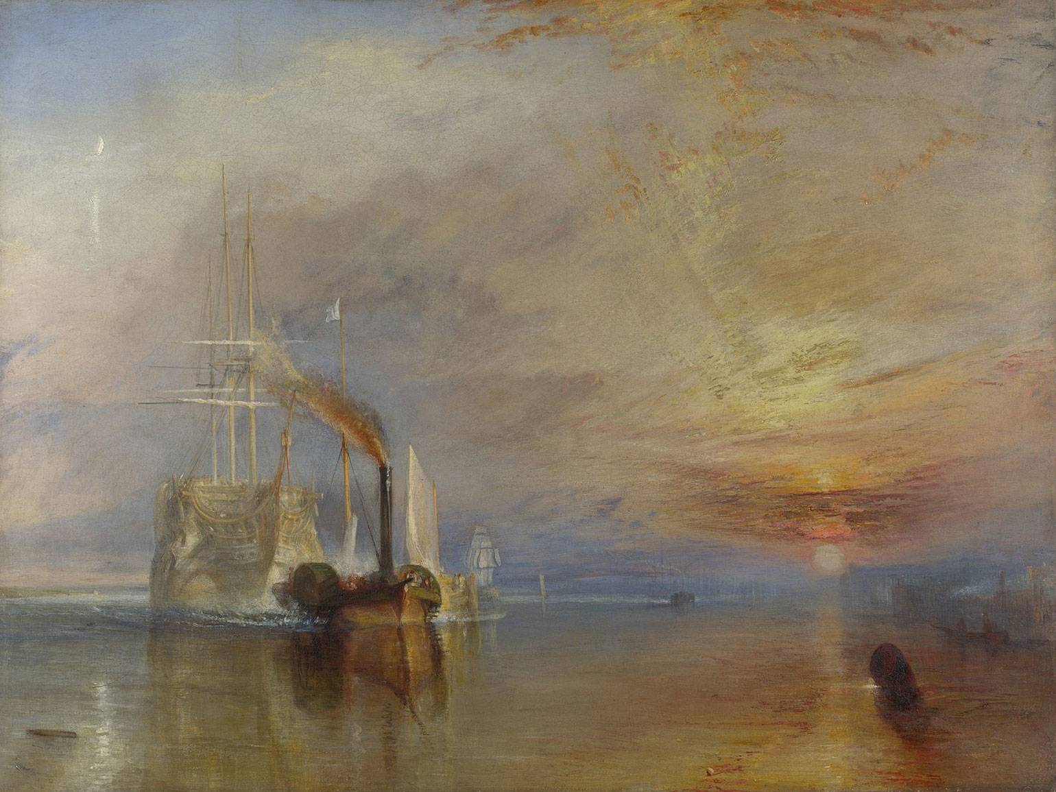 В тридцатые и сороковые годы XIX века художник первым понял, что современность, индустриализация и технический прогресс — достойные сюжеты для живописи. В 1839 году Тёрнер превратил сцену с буксируемым по Темзе на разборку старым военным кораблём «Отважный» в элегию ушедшей эпохе парусов. Маленький, но куда более мощный пароход тянет за собой величественный парусник, который больше никогда не выйдет в море.