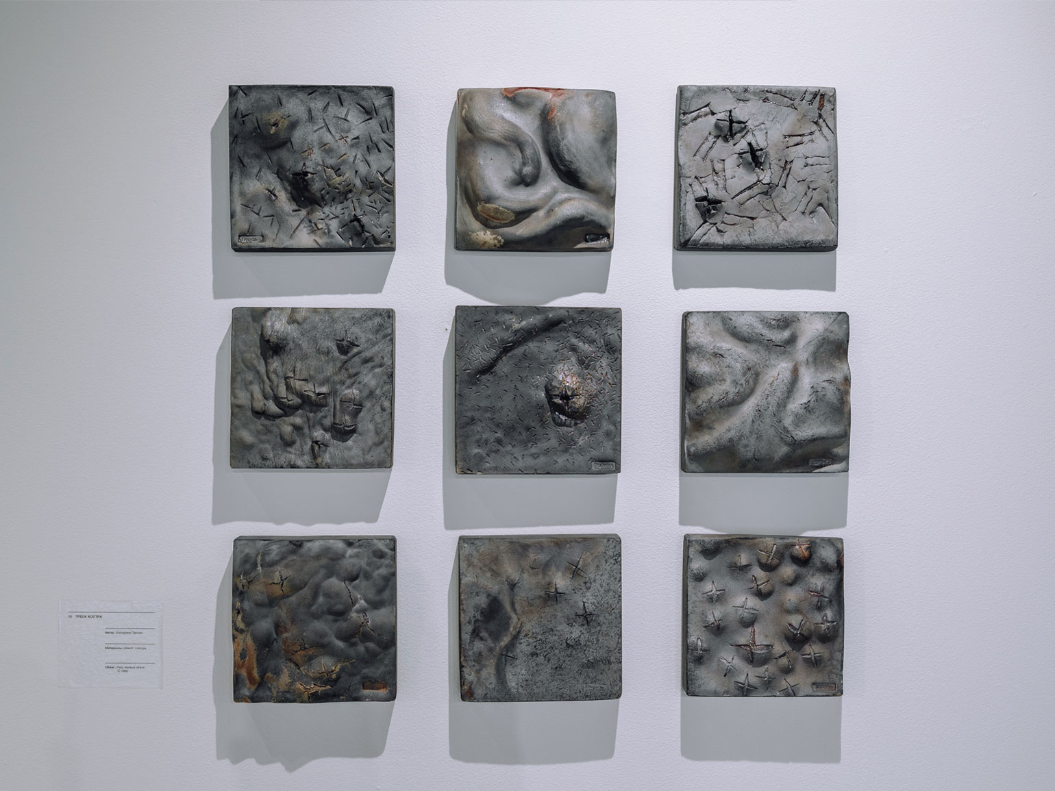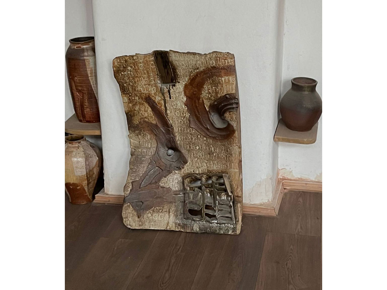От меня Саша, возможно, взяла приём ассамбляжа — когда керамические изделия становятся художественными элементами произведения, буквально вминаются в него. Единственное, Саша в рамках этой работы много экспериментировала с глазурями — я бы на её месте оставил чистый черепок, чтобы не отвлекать цветом от формы.