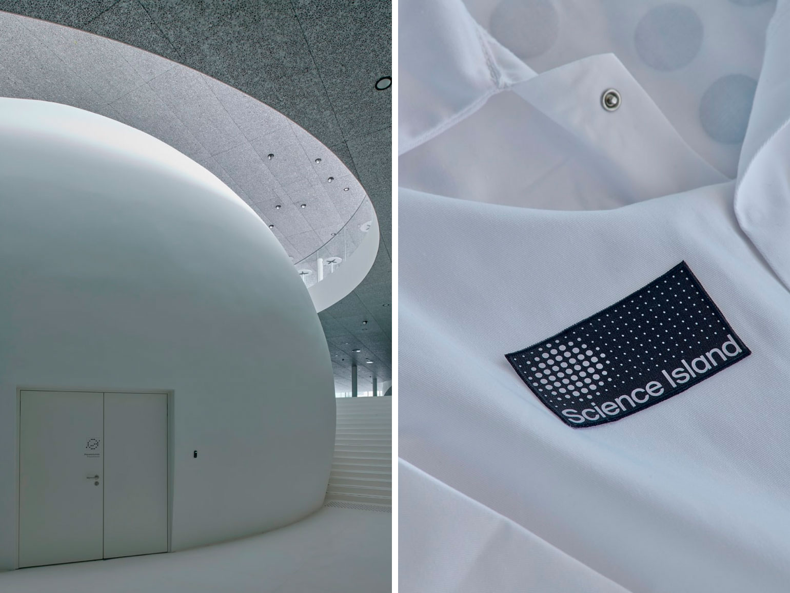 В основе айдентики Science Island — точка. Это базовый элемент, из которого формируются сложные структуры. Этот минималистичный приём отсылает одновременно к атомам, планетам, данным и научным моделям, отражая саму суть научного познания — от простого к сложному. Графическая система легко адаптируется под разные носители и форматы коммуникации — от навигации и образовательных материалов до цифровых платформ.