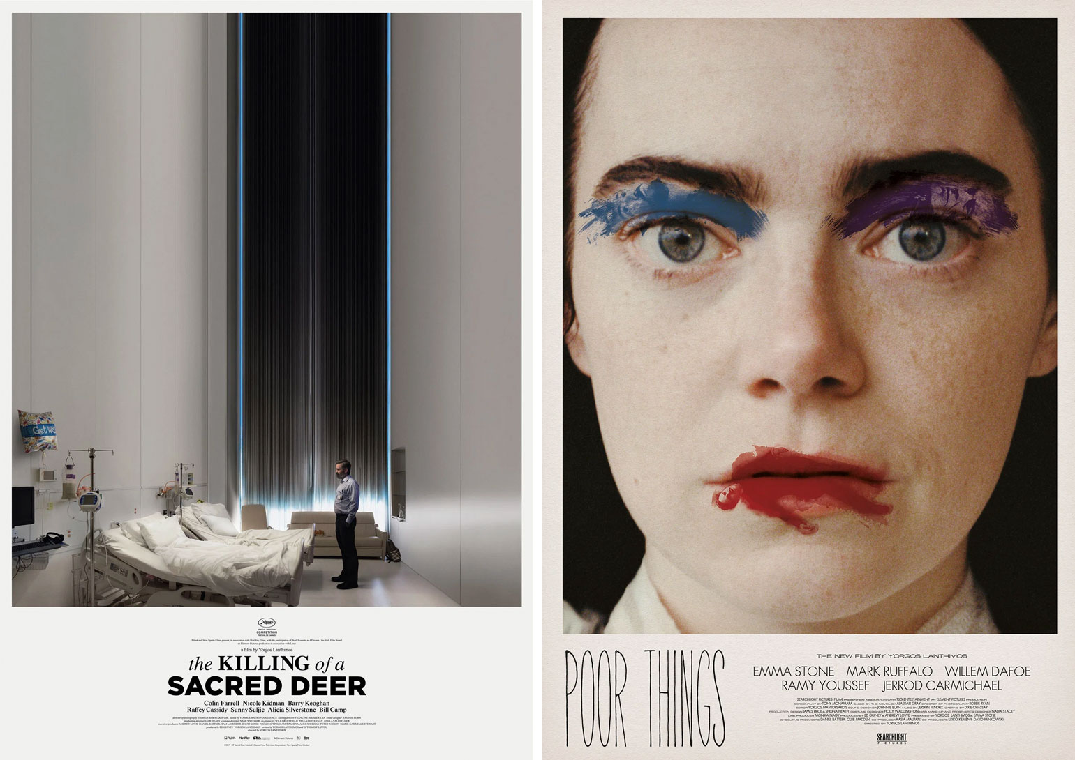 Василис Марматакис говорит, что всегда предлагает несколько вариантов плакатов, каждый из которых показывает другую сторону истории, но все они связаны общей мыслью. Например, в Poor Things («Бедные-несчастные») первый постер — это экстремально крупный план освещённого лица Эммы Стоун, с намеренно размазанной помадой и тенями. Но если присмотреться, оказывается, что косметикой нарисованы мужские герои этого фильма.