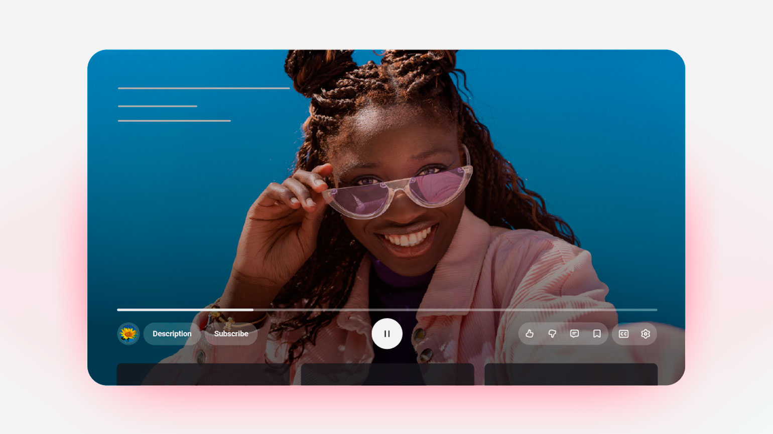 Теперь слева отображаются логотип канала и кнопки «Подписаться» и «Описание», справа — элементы для настройки видео. В плеер добавили новые визуальные эффекты. При двойном тапе для перемотки появилась обновлённая анимация, а при нажатии лайка — тематические эффекты, которые зависят от контента. Например, если лайкнуть музыкальный клип, на экране появляются ноты.