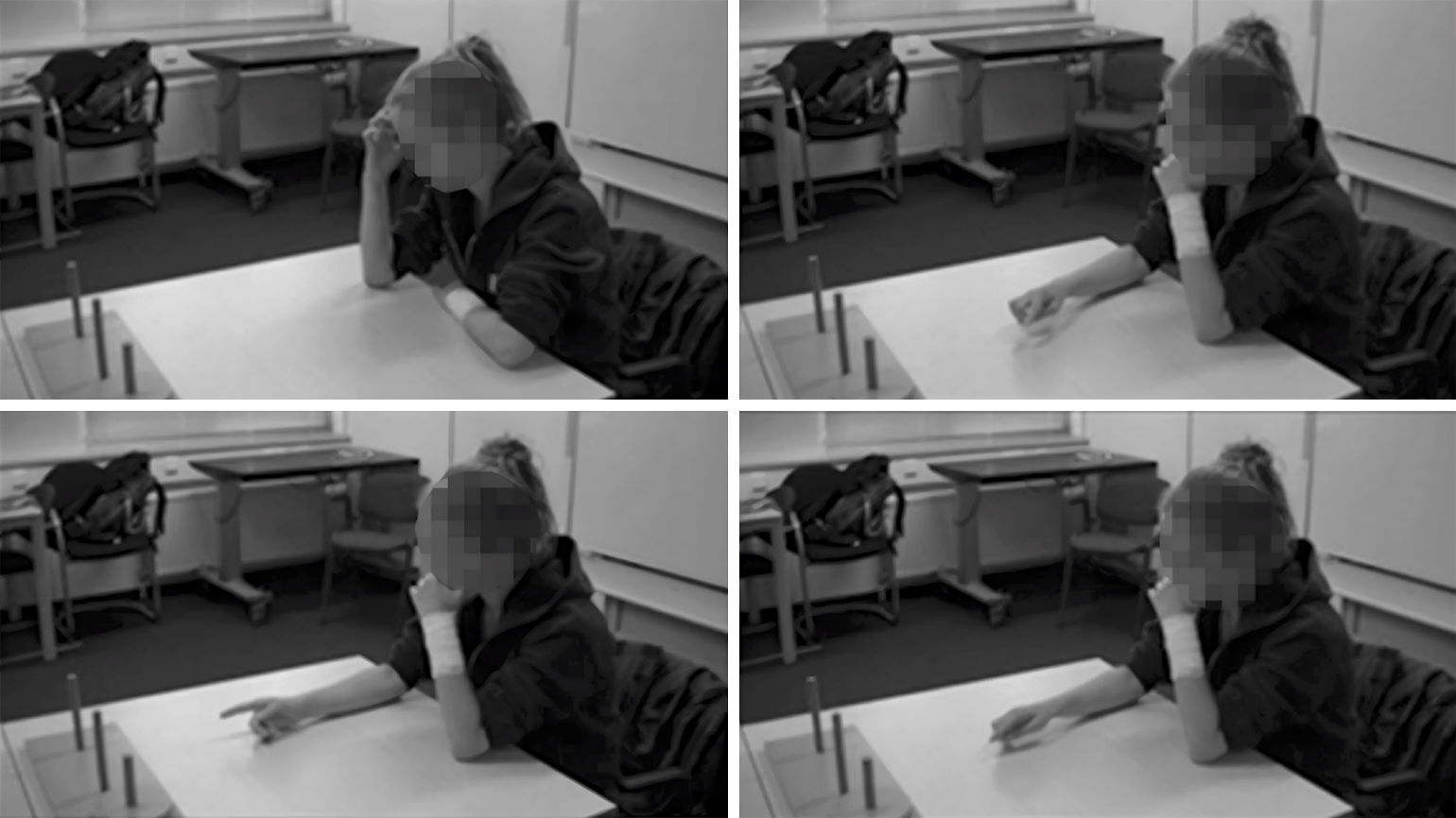 Исследователи работали с 73 студентами вуза. Группа, участникам которой посоветовали в решении пользоваться жестами, и те из участников контрольной группы, кто спонтанно жестикулировал (например, пересчитывал оставшиеся диски, указывая на них пальцем), справились с задачей быстрее.