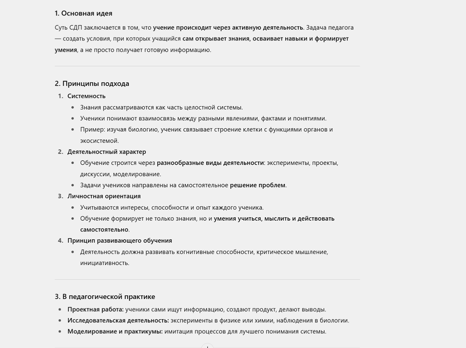 Заметим, однако, что обозначенная проблема встречается лишь в тех случаях, когда в сложном стиле (с обилием метафор или научных терминов) написаны исходные тексты, на базе которых вы просите нейросеть разработать учебные материалы. Например, если среди них много научных статей и аналитических отчётов, а доступных в публичном поле публикаций на ту же тему, написанных в инфостиле, попросту нет.