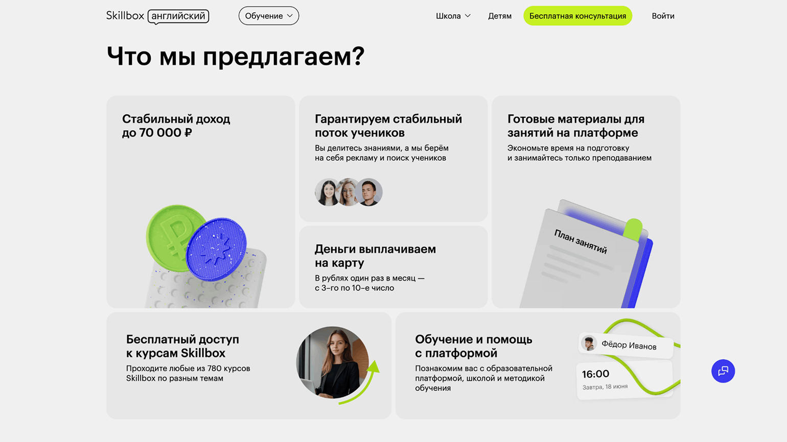 Сотрудничество репетиторов с платформами подразумевает частичную занятость и свободный график. Некоторые онлайн-школы устанавливают минимум уроков, которые важно провести в неделю (порядка 10–15), другие, как Skyeng, оставляют уровень нагрузки полностью на усмотрение преподавателя.