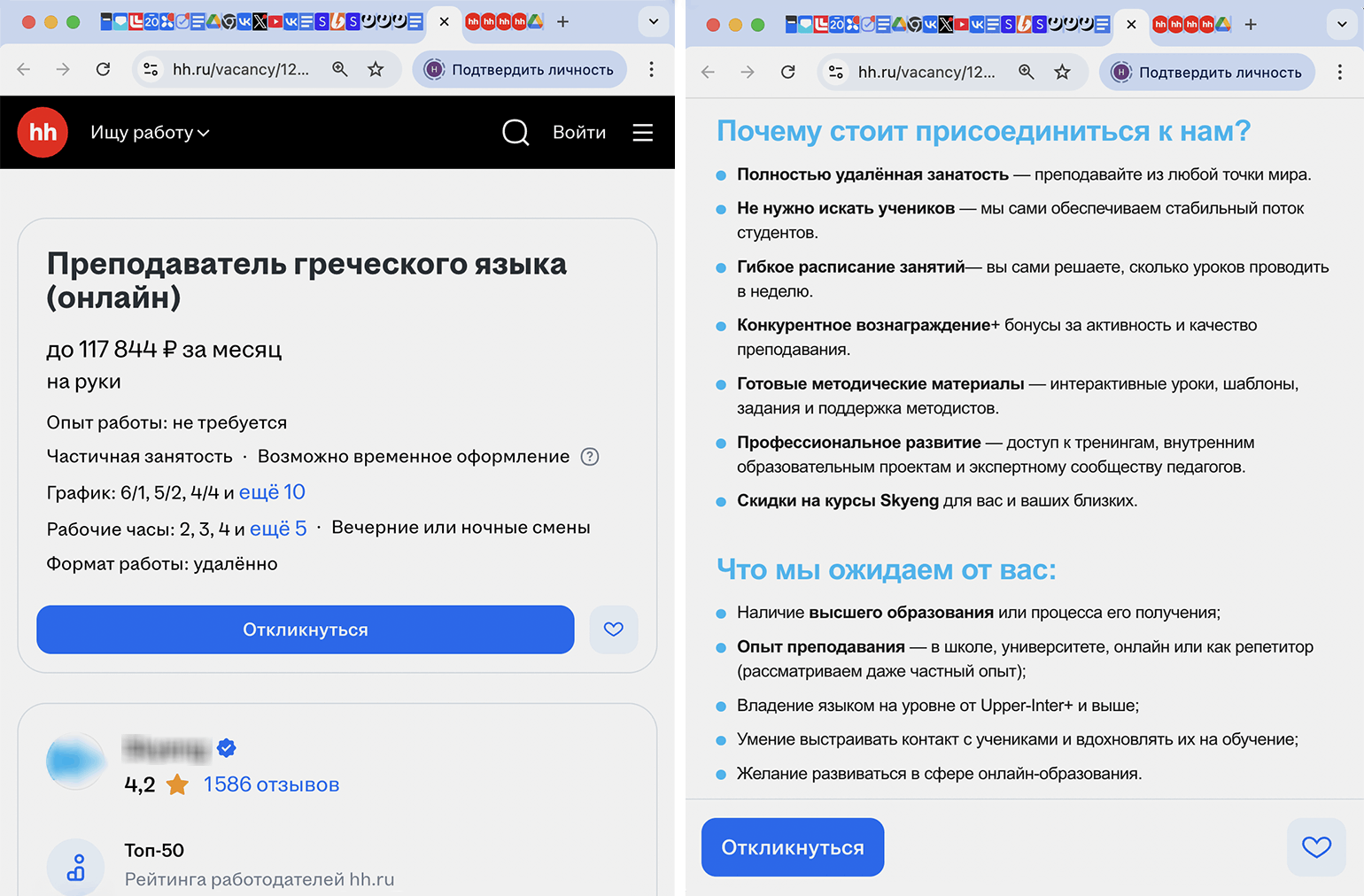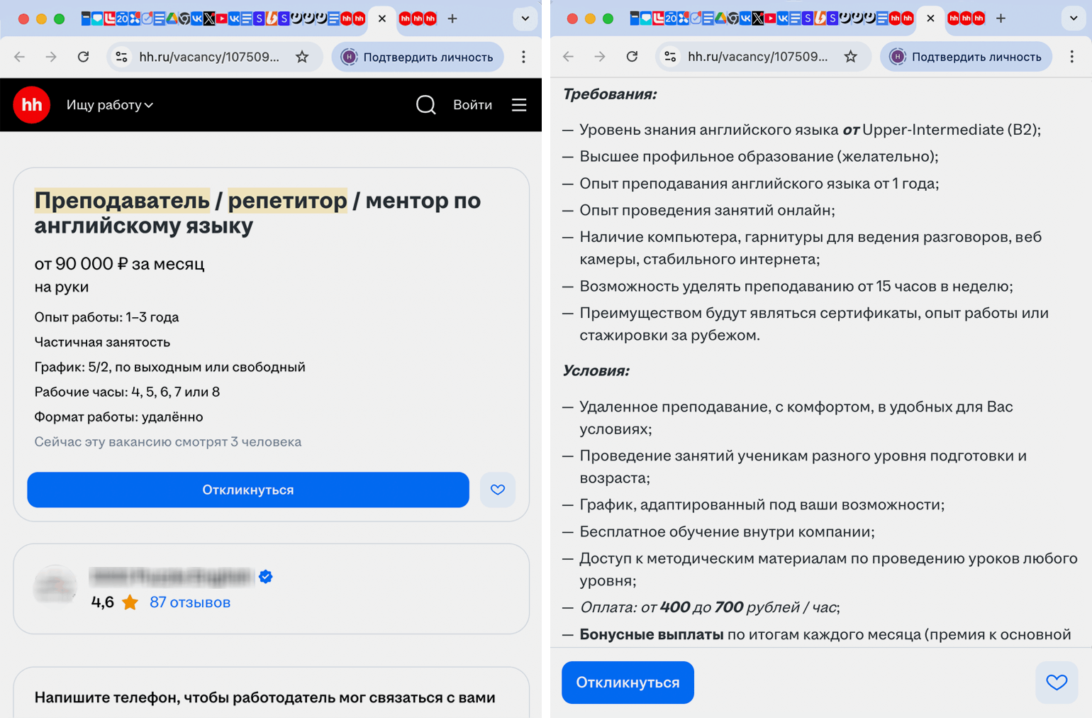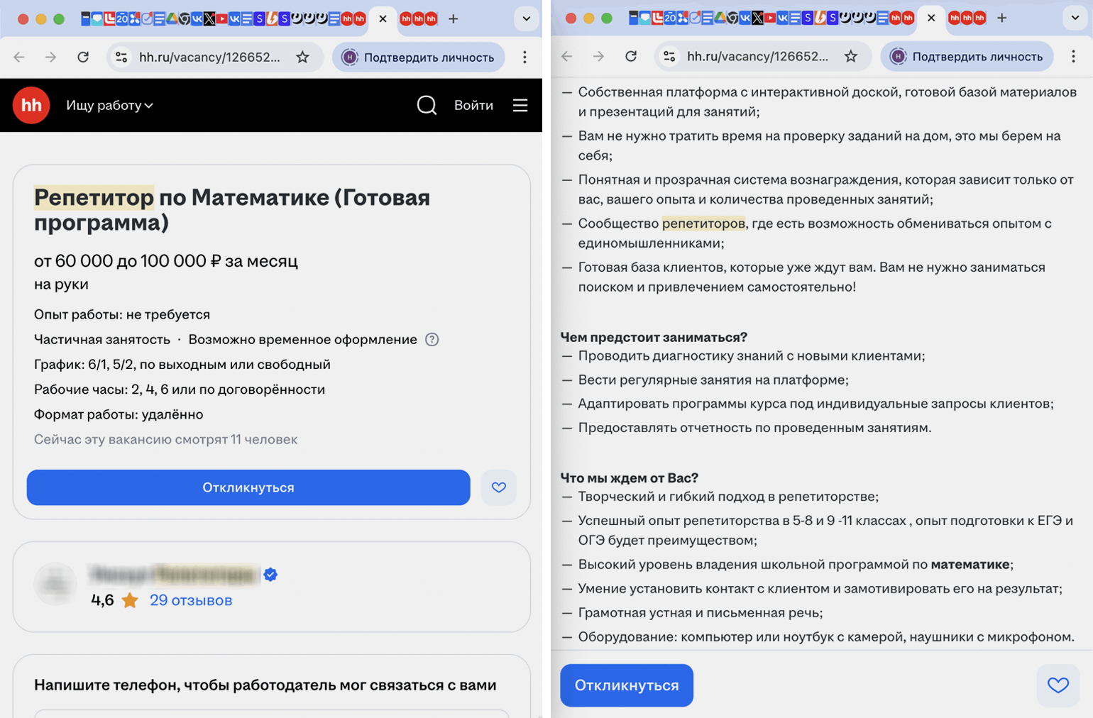 У школьного учителя английского и репетитора Марии противоположный опыт: «На „Авито“, по-моему, вообще происходит непонятно что: десятки вакансий от онлайн-школ, написанных под копирку, которые обещают уроки за 300 рублей, платят за рекламу и выходят в топ; „учителя“, достижения и опыт которых — это буквально „сдала ОГЭ на пять“, и ценник гораздо ниже того, что готова поставить я. Успеха на „Авито“ я не получила, только попрощалась со своими нервными клетками».