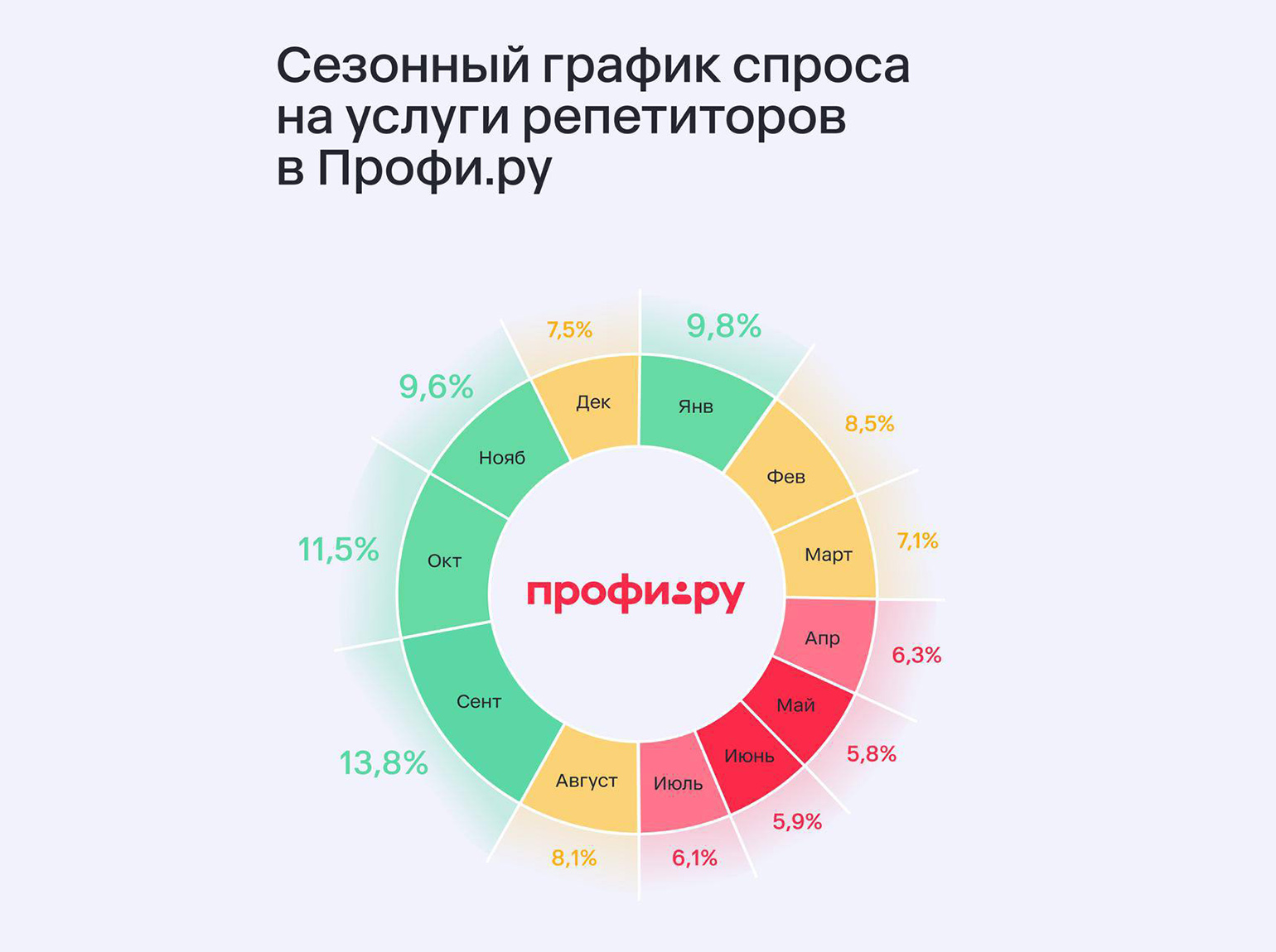 Занятость и, как следствие, доход репетиторов неравномерен в течение года из-за сезонного фактора. Основной спрос на репетиторские услуги начинается с августа по октябрь, именно в это время люди активно ищут преподавателей, и репетиторы могут набрать учеников на учебный год. Затем в январе-феврале к репетиторам, готовящим к ЕГЭ, обращаются те, кто не начал заниматься раньше. Некоторые новые ученики приходят после выставления в школах оценок за четверть, когда оказывается, что им нужно закрыть пробелы по каким-либо предметам. Но в целом, уже начиная с марта, спрос падает, а летом даже те ученики, кто занимается регулярно, как правило, делают перерывы. Это относится и к школьникам, и к взрослым ученикам. Так что тем, для кого репетиторство — основная работа, нужно учитывать сезонность и в течение года откладывать часть дохода на «мёртвый» летний сезон.
