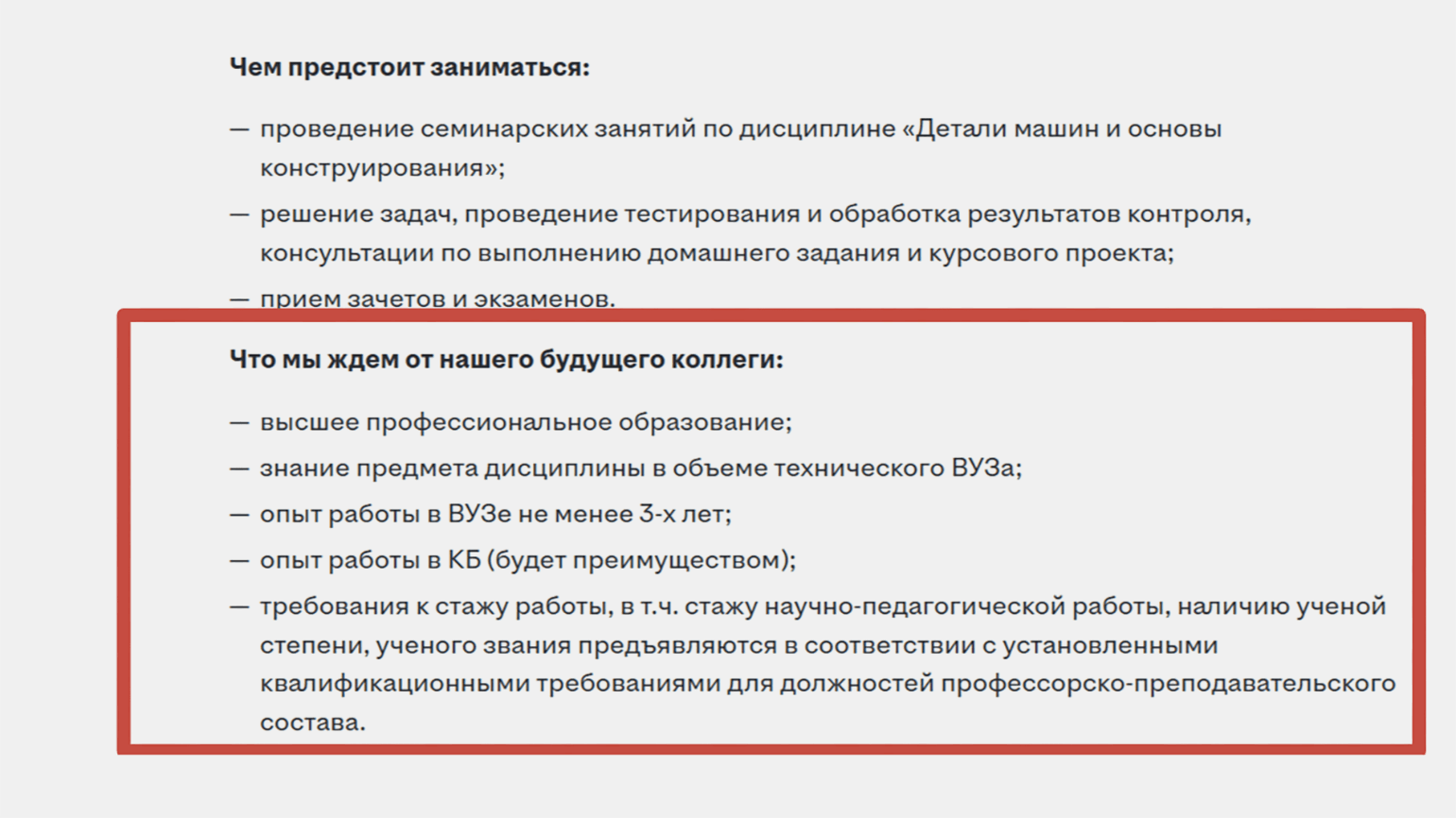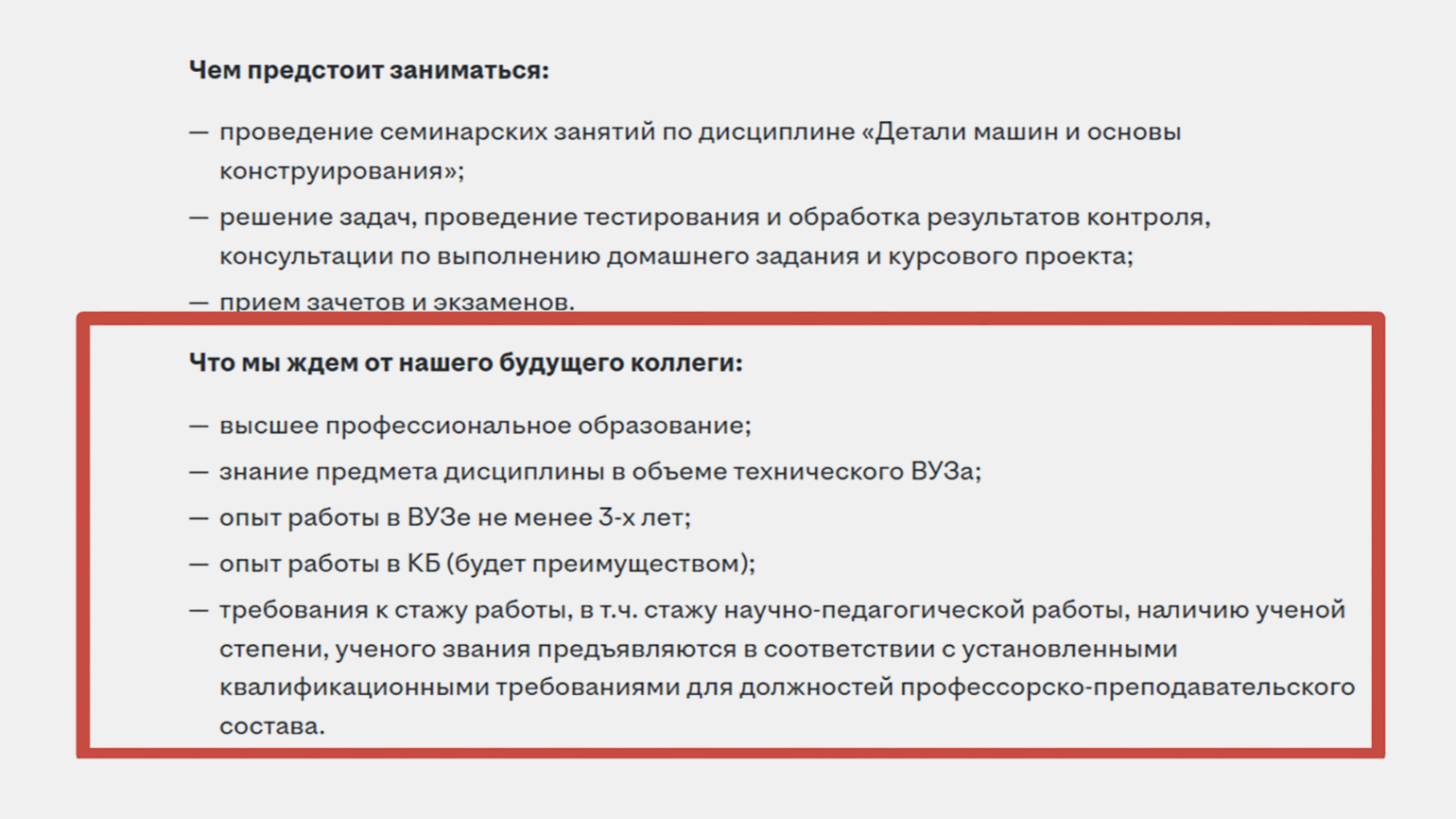 Все эти должности подразумевают, что сотрудник параллельно с учебной работой со студентами занимается и научно-исследовательской деятельностью. То есть карьера преподавателя в российских вузах обычно — это одновременно и научная карьера. Но бывают и исключения, о них мы расскажем в конце статьи.