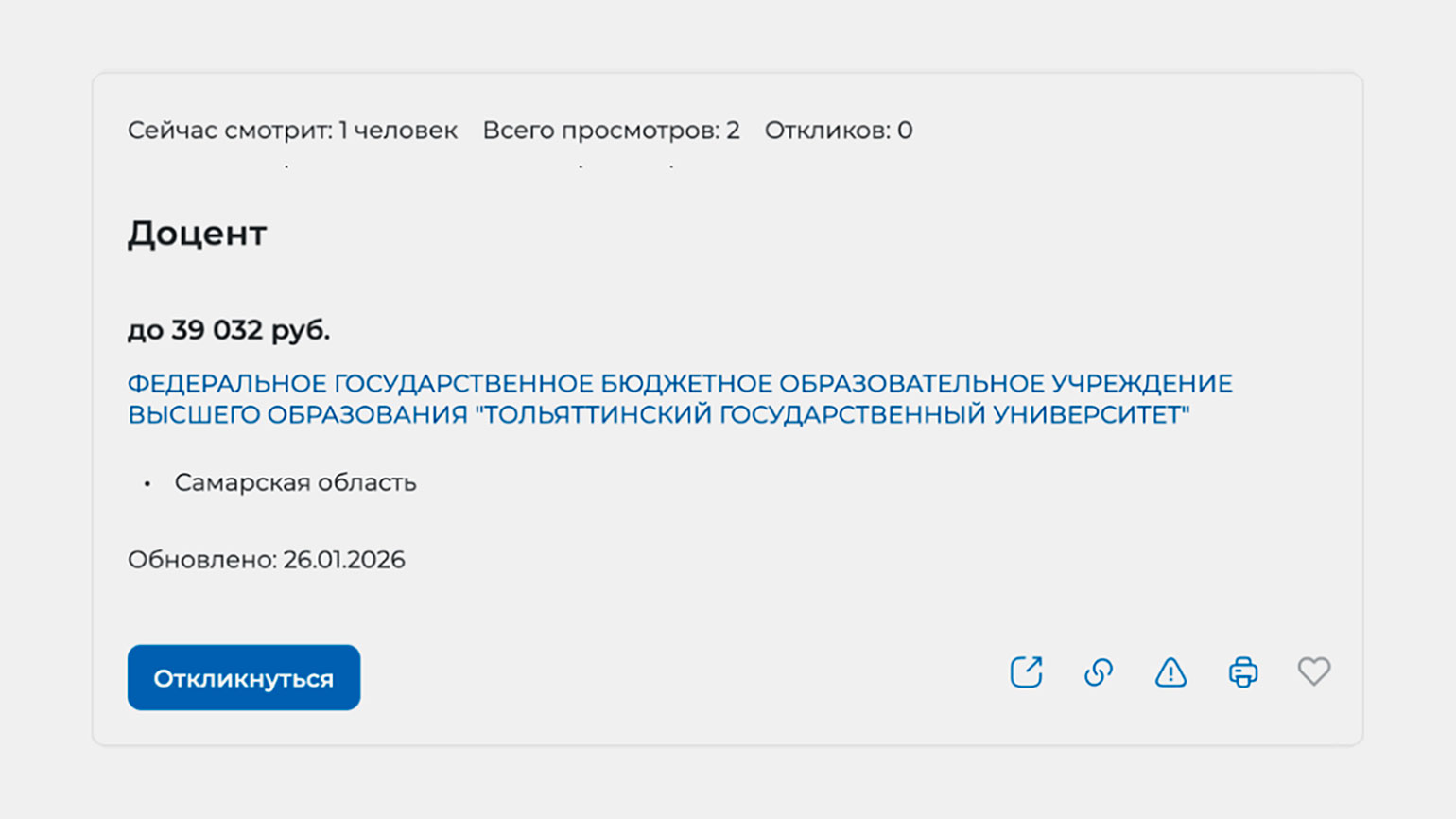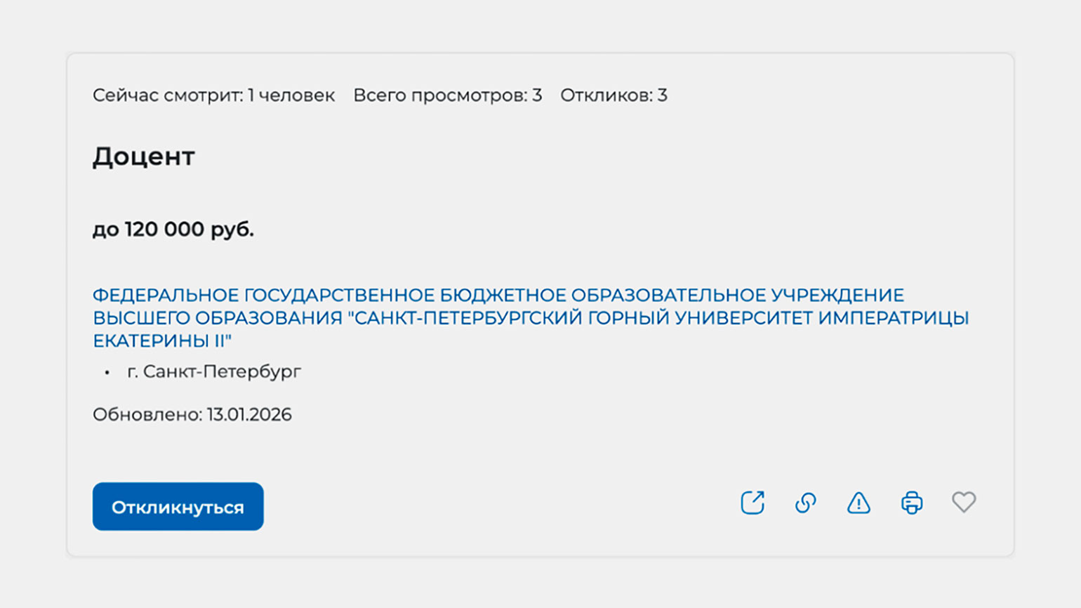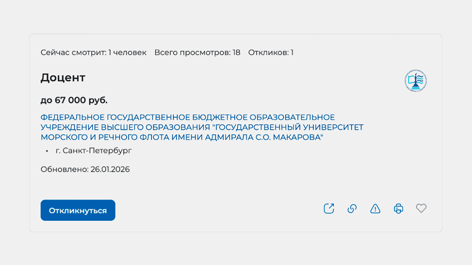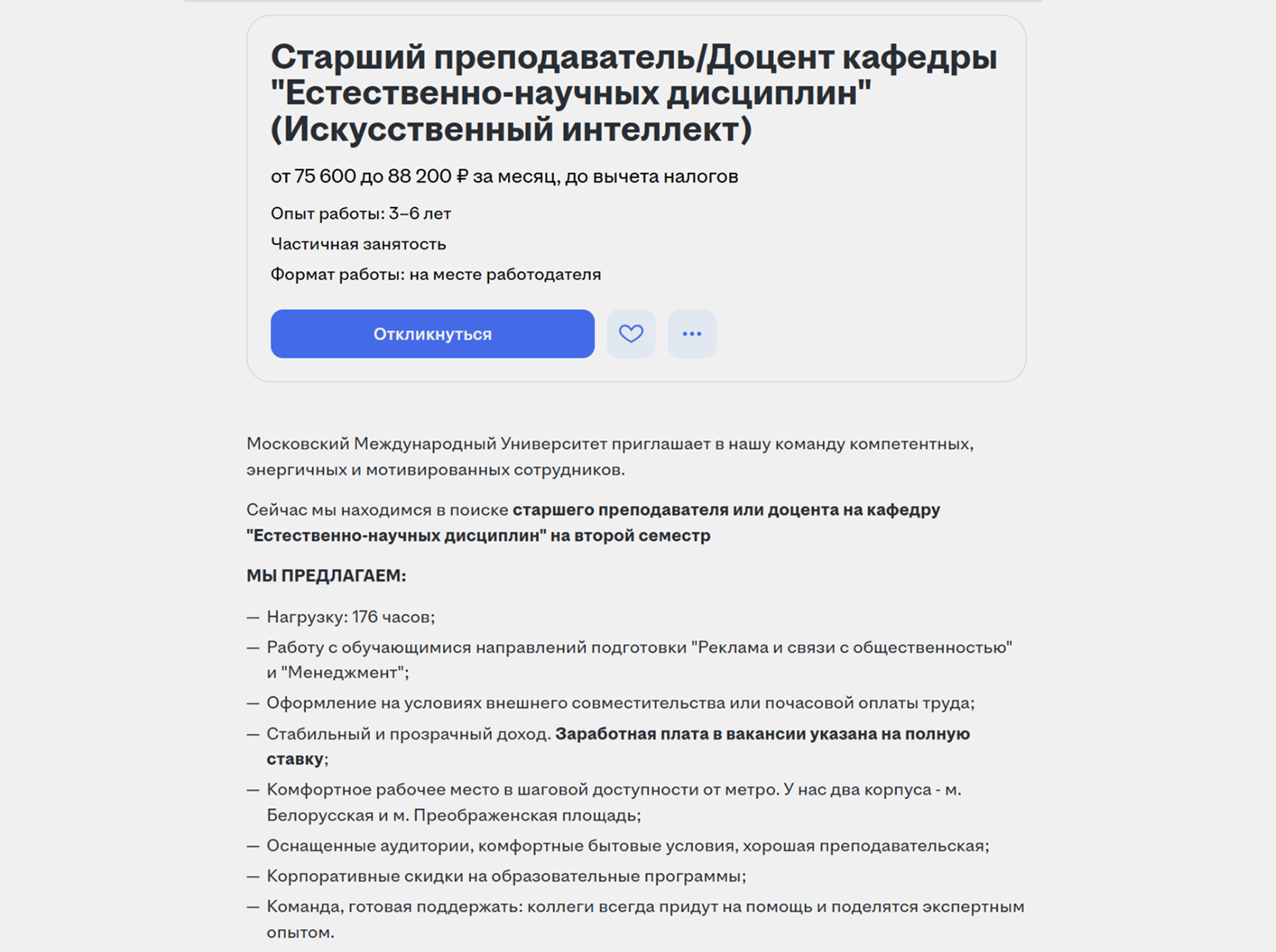 Предложения о работе преподавателями можно найти как на сайте самих университетов, так и на обычных сайтах с вакансиями («Работа России», hh.ru, SuperJob). Правда, таких вакансий не бывает много. Дело, вероятно, не только в том, что в вузах довольно редко освобождаются уже имеющиеся позиции и открываются новые, но и в том, что эти позиции рассчитаны на довольно узкий круг желающих.