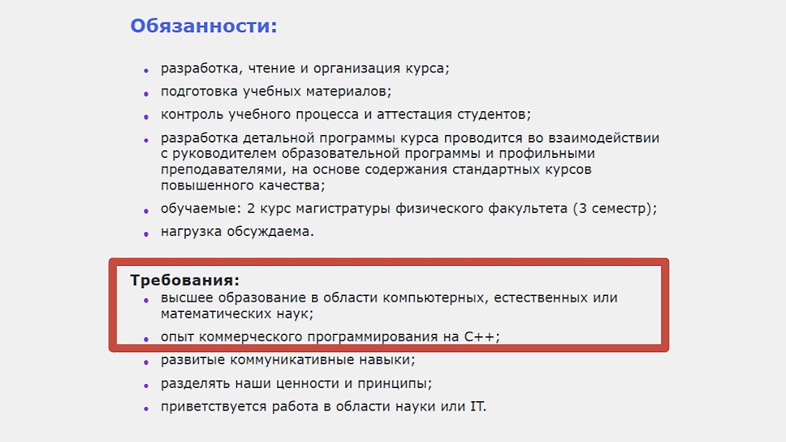 Вузы обычно «растят» будущих преподавателей из своих же перспективных магистрантов, которые активно включаются в деятельность лабораторий, участвуют в конференциях, публикуют статьи в научных журналах. Более того, перспективный студент, судя по личному опыту преподавателей, которые пообщались со Skillbox Media, может уже в бакалавриате получить предложение о работе ассистентом кафедры, а первый преподавательский опыт получить во время учёбы в магистратуре. Так бывает, если у студента замечают интерес к науке и способности к исследовательской работе.
