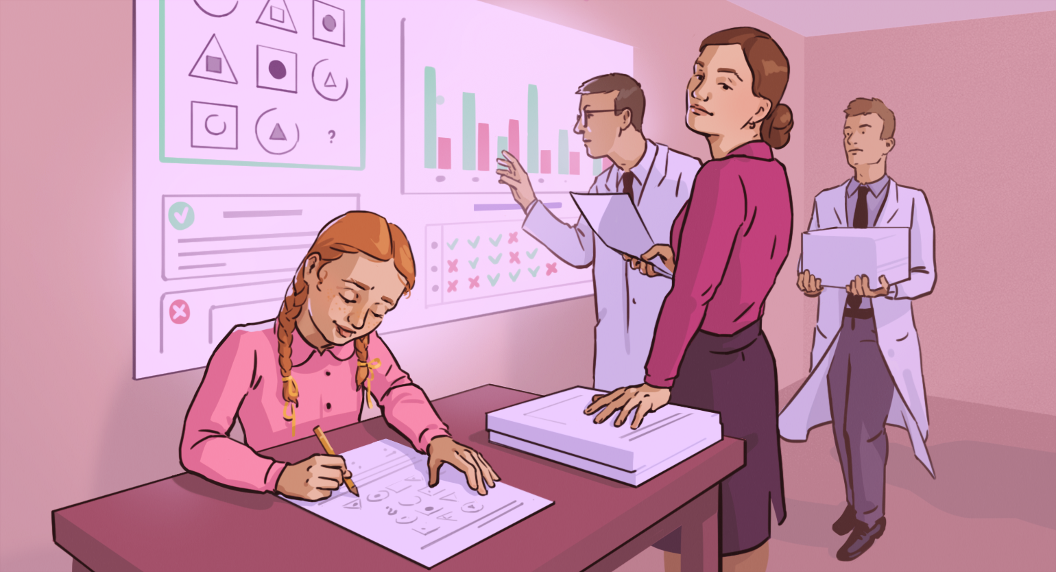 Во-вторых, результаты тестов интеллекта применяют при диагностике задержки умственного развития, специфических нарушений в формировании учебных навыков (таких как дислексия), расстройств аутистического спектра. Эти же показатели учитывает психолого-медико-педагогическая комиссия (ПМПК), составляя заключение, нужны ли ребёнку с особенностями развития специальные условия для получения образования. Например, сопровождение тьютора в обычной школе или обучение в коррекционном учебном заведении.