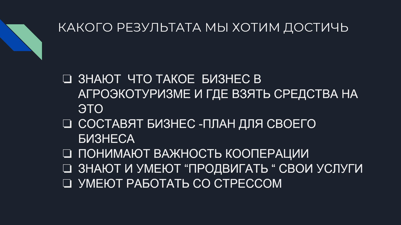 Для курсовой работы я выбрала близкую мне тему и разработала программу для предпринимателей, которые хотят организовать в своем регионе агротуризм: что делать, чему учиться, какие исследования провести, чтобы запустить бизнес. Защита курсовой прошла отлично, я отточила свои навыки и получила от комиссии много позитивной энергии.