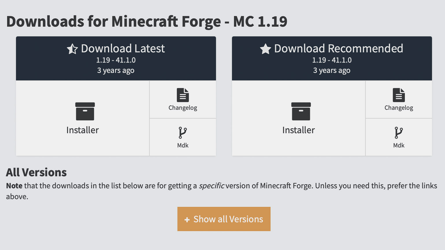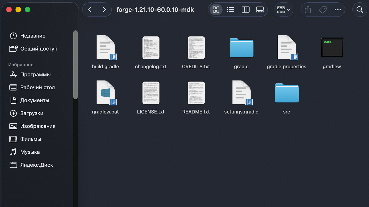 Чтобы начать работу над модом, скачайте Forge MDK (Mod Development Kit — набор для разработки модов). Это шаблон проекта со всеми необходимыми файлами, базовыми функциями и заготовками кода.