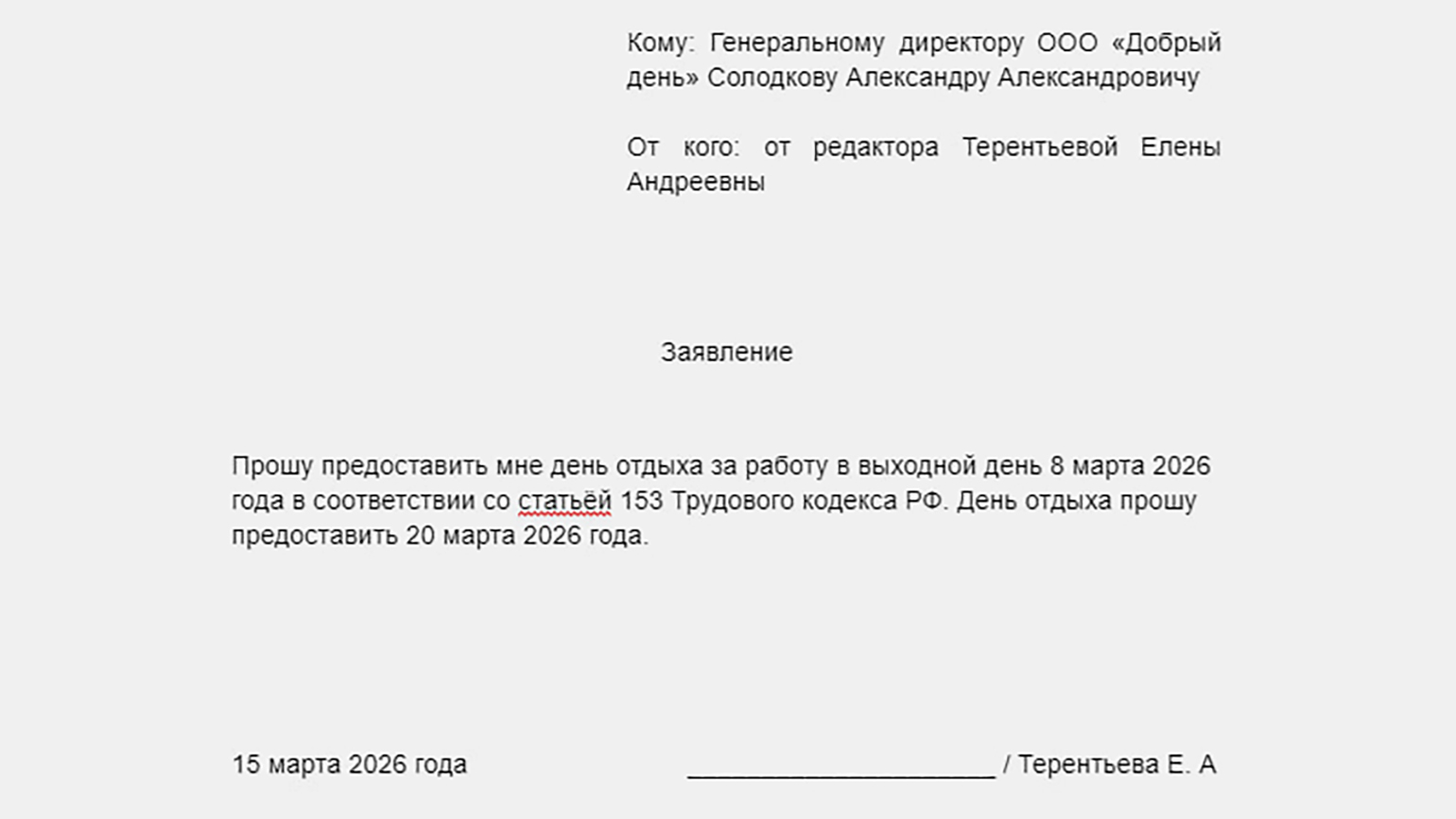 Как правильно написать заявление на отгул по ТК РФ: правила и примеры