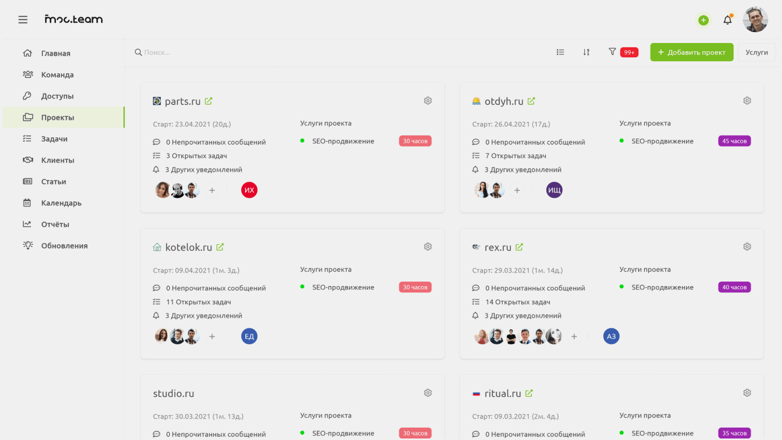 Система управления проектами с таск-менеджером, хранилищем доступов и базой знаний. Помогает распределять задачи между сотрудниками, следить за сроками и учитывать затраты. Пользователи быстро осваивают сервис благодаря интуитивно понятному интерфейсу.