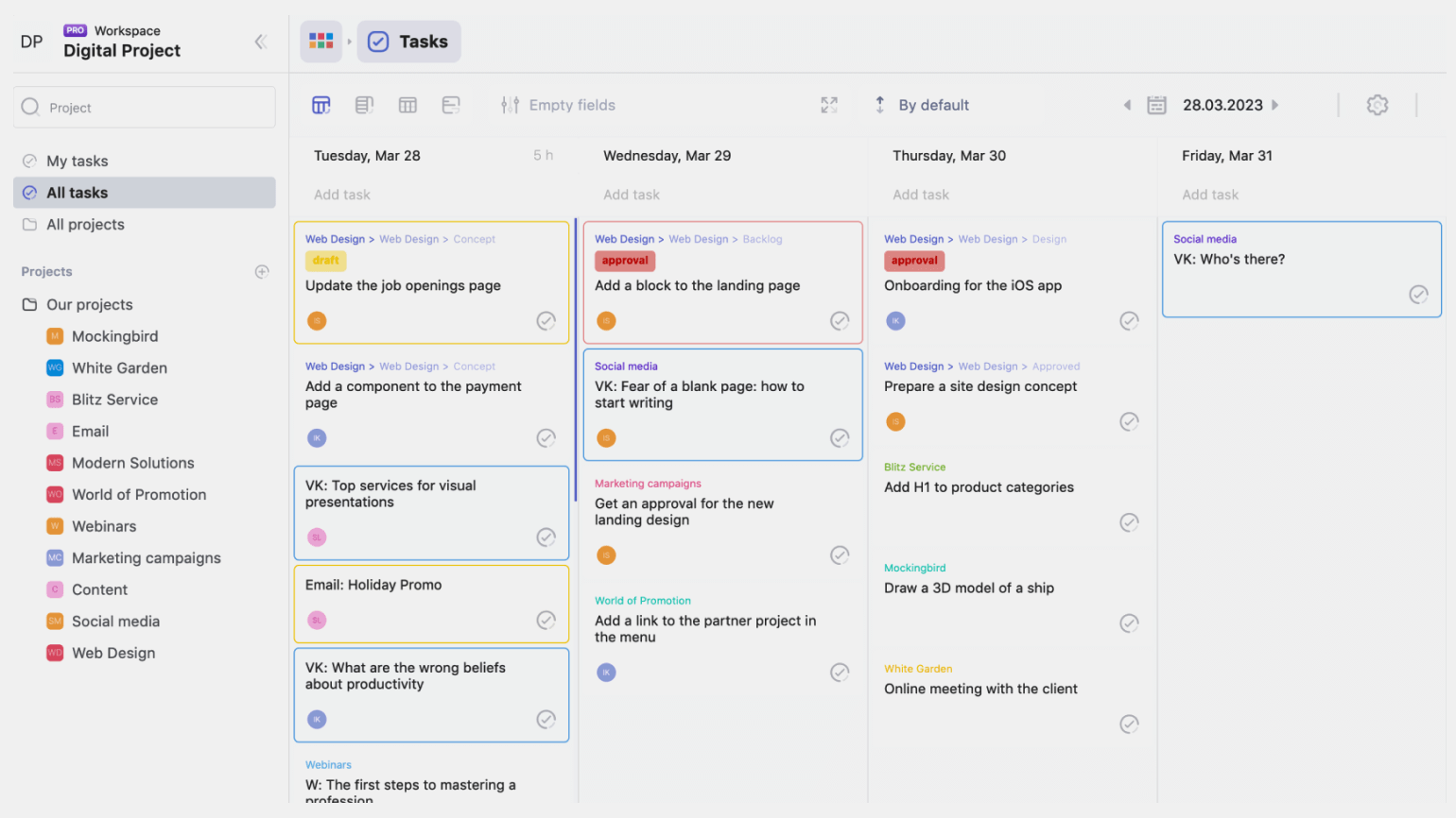 - Удобная иерархия проектов и возможность добавлять личные теги.
