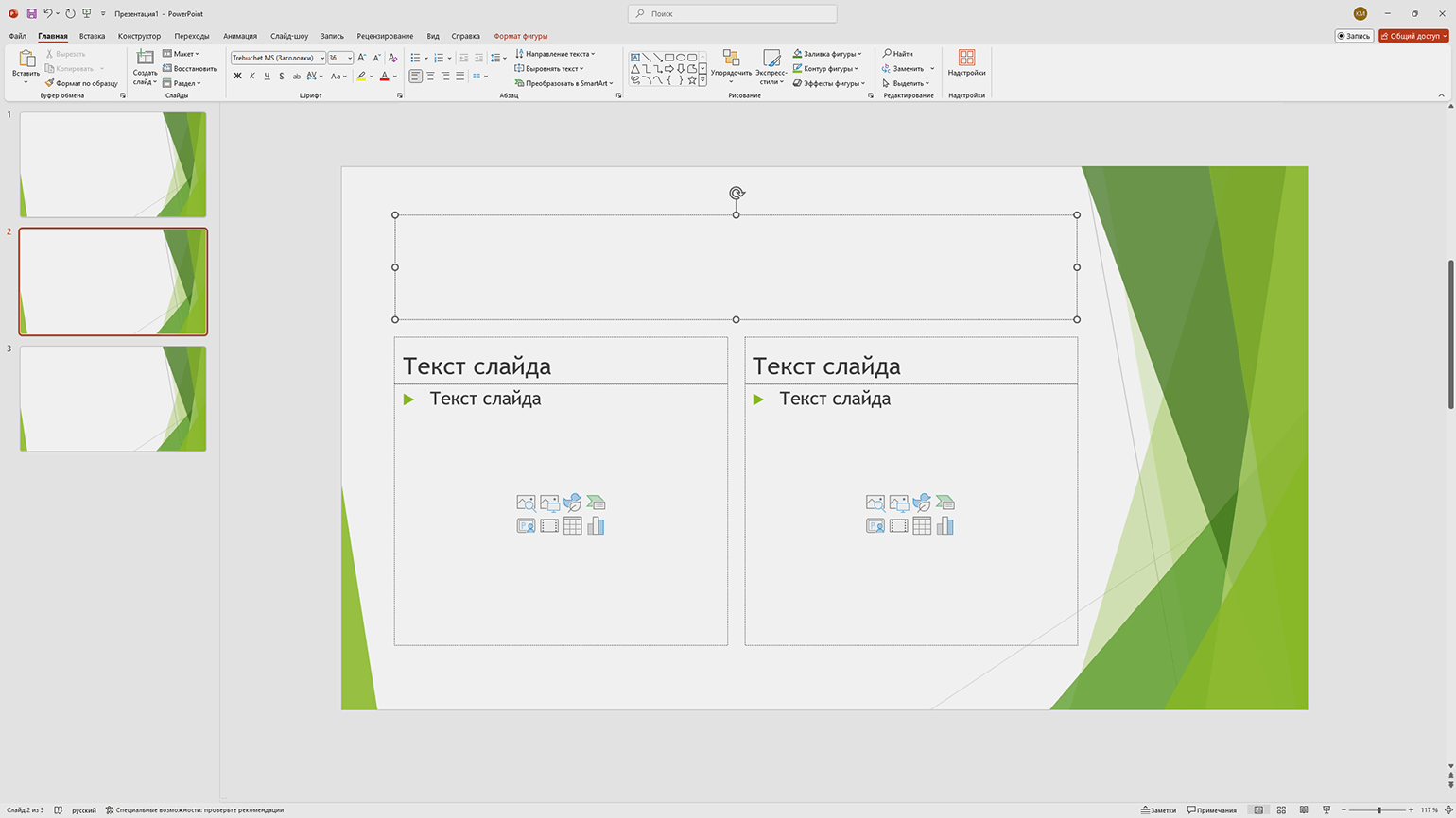 - Лишние отступы. Когда вы создаёте любой текстовый блок, к нему по умолчанию добавляется внутренний отступ. То есть край блока для текста и край самого текста не совпадают. Из-за этого текст сложно поставить вровень с другими объектами на слайде. Результат — неаккуратный дизайн.
