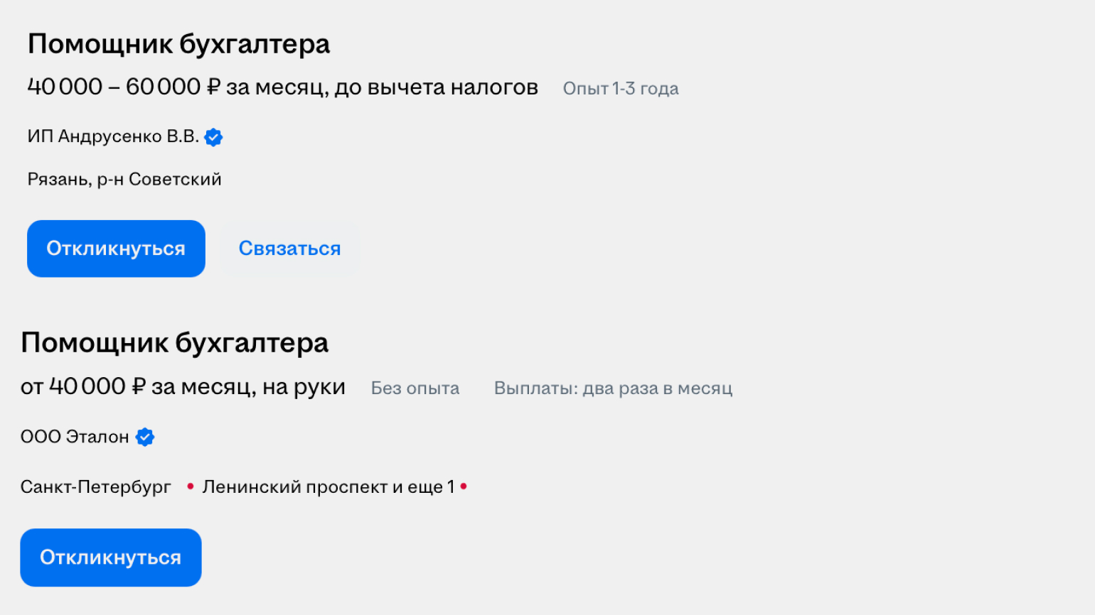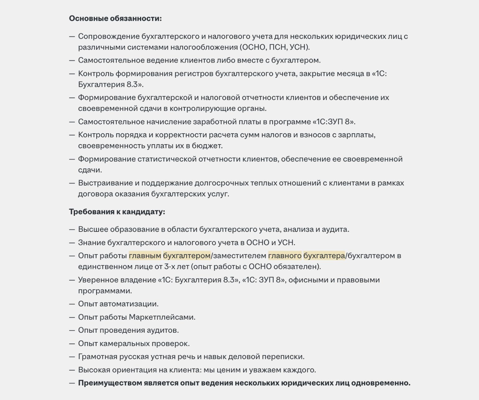 Для примера рассмотрим две вакансии для главного бухгалтера.