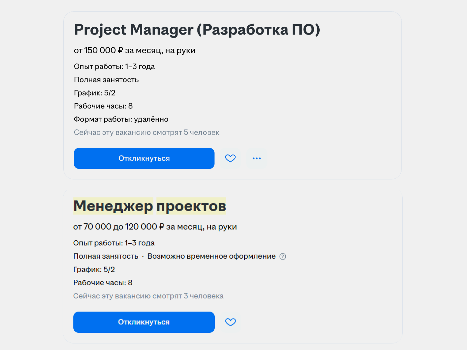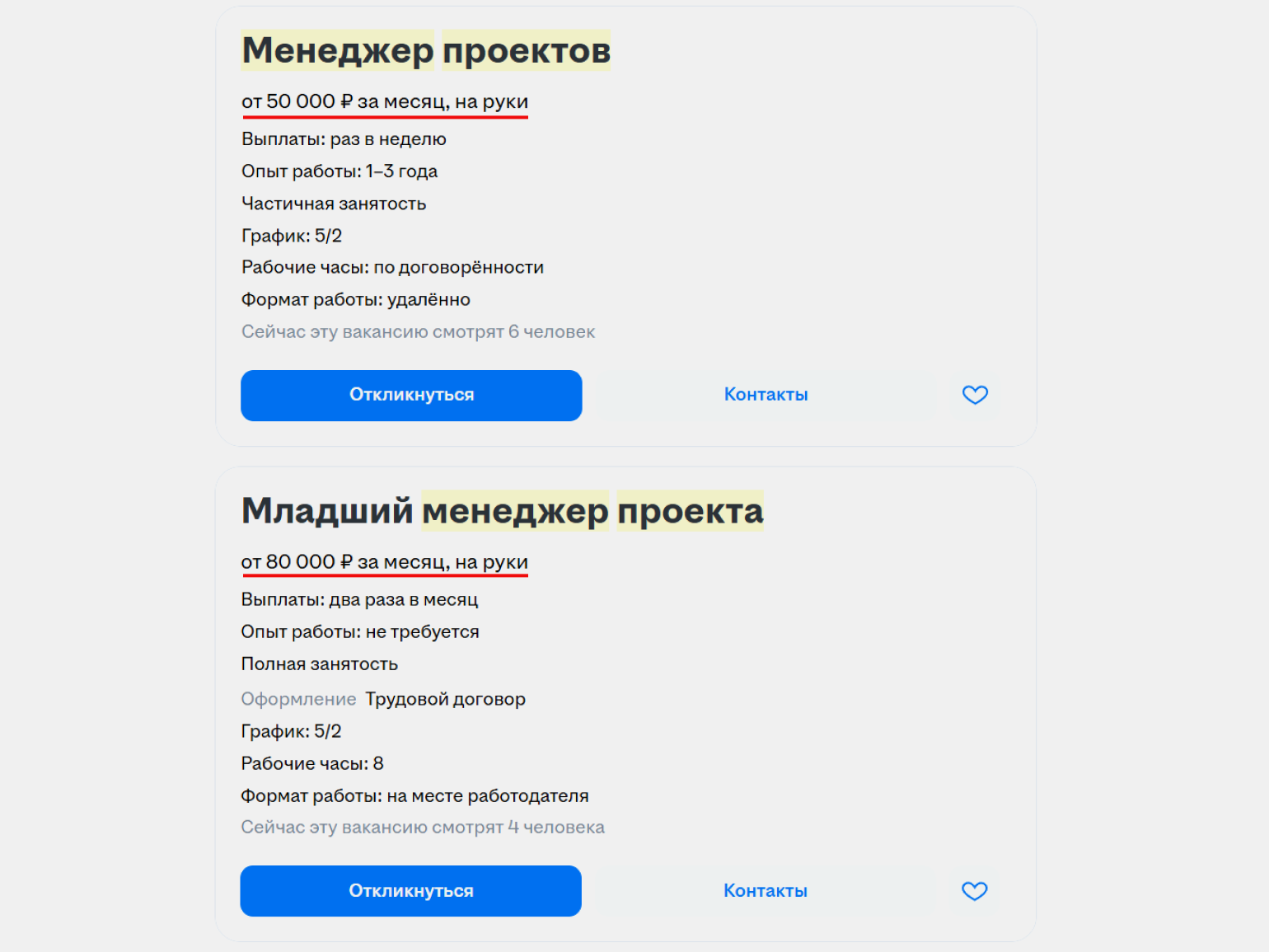 Минимальные зарплаты в вакансиях для менеджеров проектов — 50–80 тысяч рублей. Максимальные доходят до 300–400 тысяч рублей: такие цифры встречаются в крупных компаниях и компаниях из сферы IT.