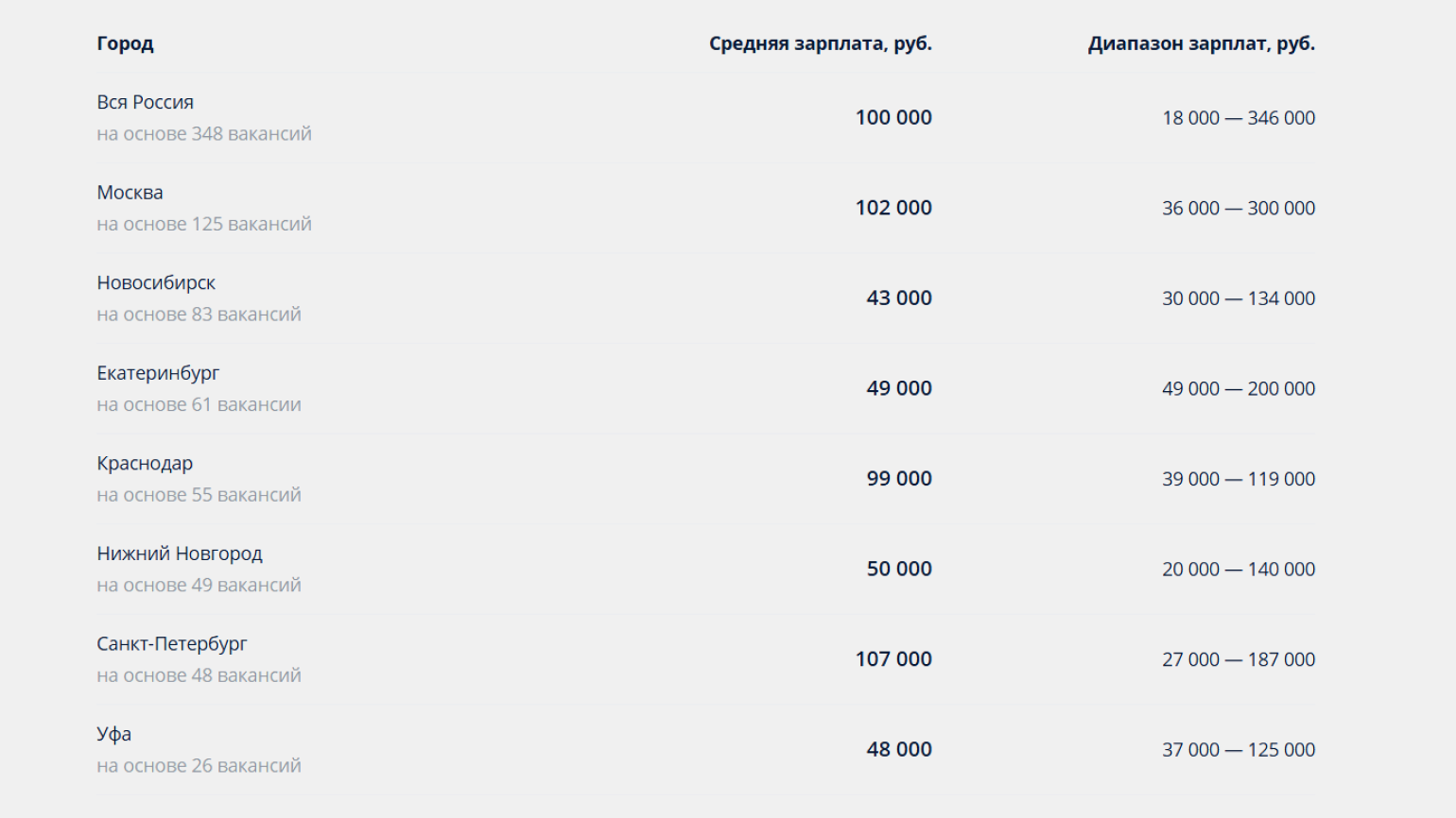 Регион. В столице зарплаты традиционно выше, чем в регионах, потому что работодатели компенсируют высокий уровень конкуренции и стоимость жизни.