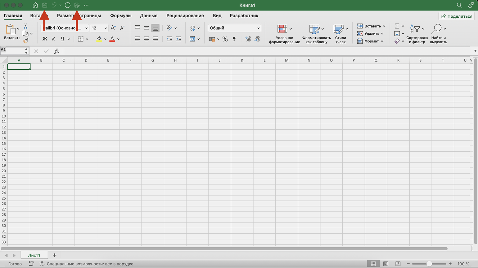 Чтобы сохранить файл, на вкладке «Главная» нажмите кнопки «Сохранить» или «Сохранить как». Excel предложит указать имя файла и папку, в которой он будет храниться.