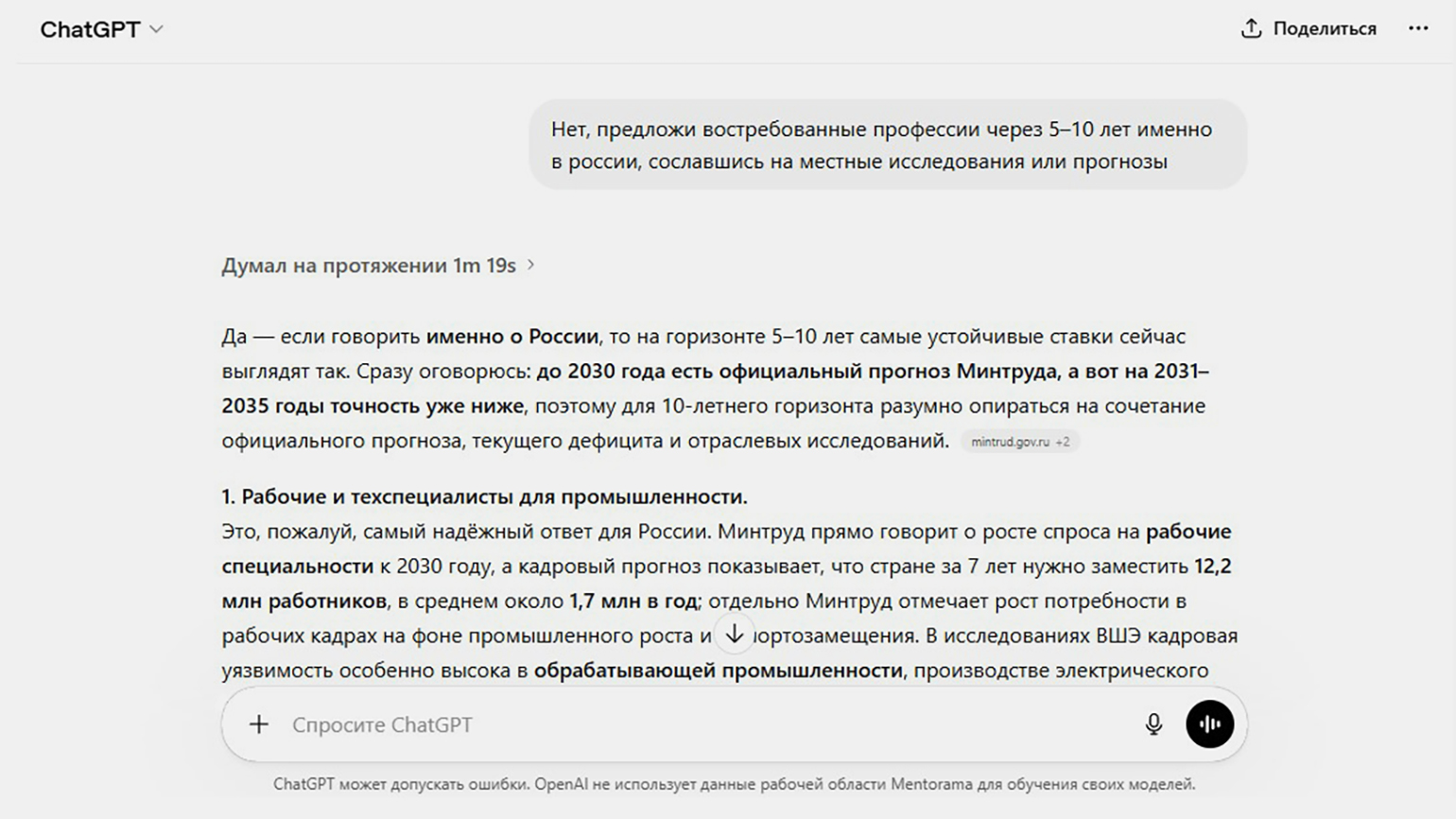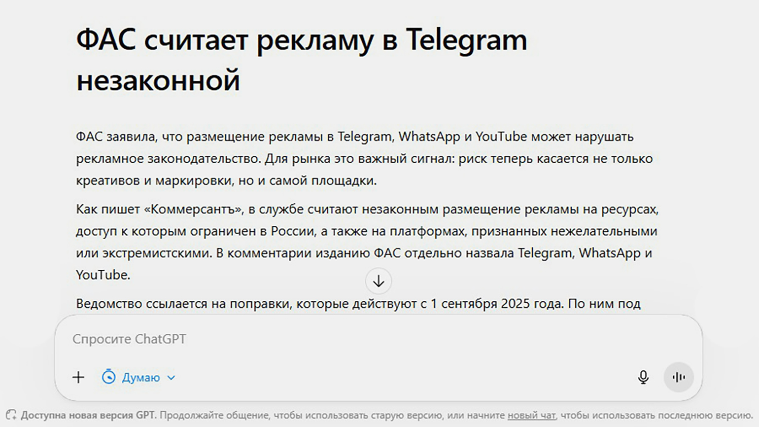 Скриншот: ChatGPT / Skillbox Media