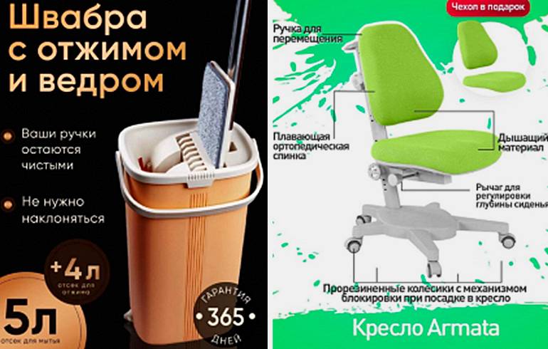 Также не нужно перекрывать товар элементами дизайна. Фото должно оставаться главным.