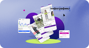 Это универсальный онлайн-редактор с библиотекой готовых шаблонов не только инфографики для маркетплейсов, но и рекламных баннеров, открыток, презентаций, печатной продукции, постов для соцсетей. Можно выбрать подходящий шаблон и заменить в нём изображения, текст и цвета.