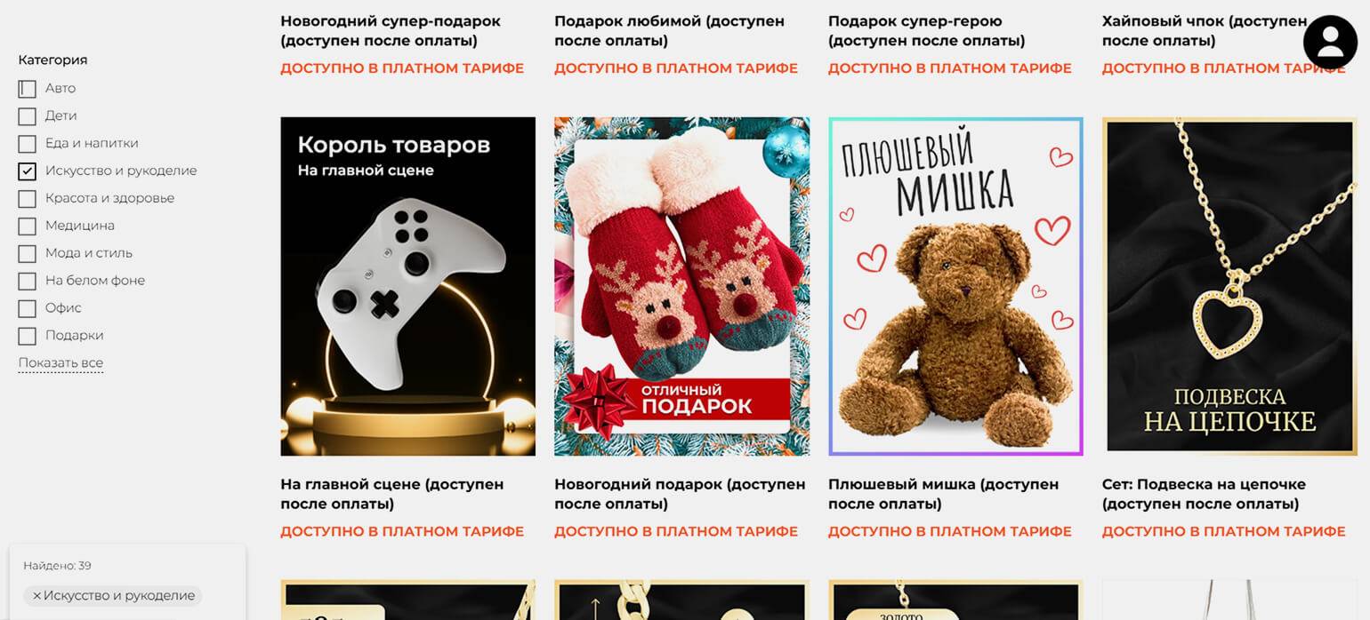 Платный тариф стоит 1490 рублей в месяц и снимает ограничения: пользователю становится доступна вся коллекция шаблонов, появляется возможность добавлять свои элементы.