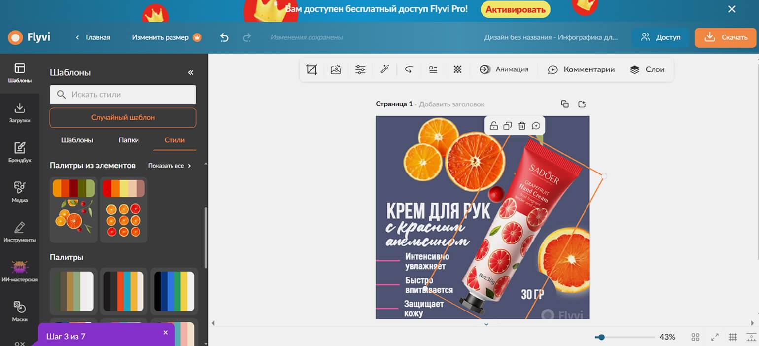 Если же у вас много карточек товаров, для которых нужно постоянно создавать инфографику, лучше выбрать сервис с большим количеством шаблонов вроде Fluvi, Photoroom или Fabula AI. И оплатить тариф с достаточным для вас количеством скачиваний.