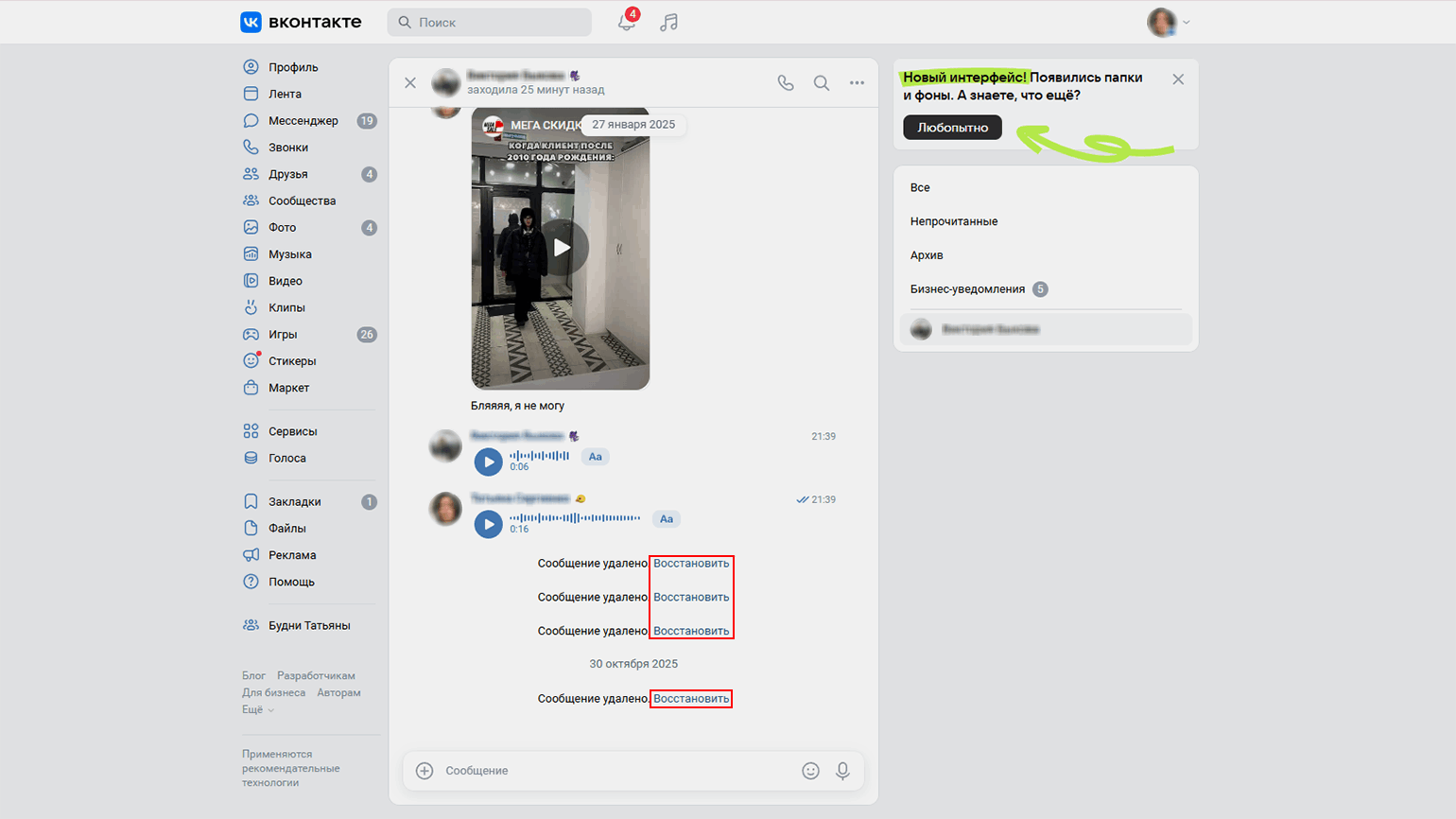 Главное о восстановлении переписки в VK в четырёх пунктах