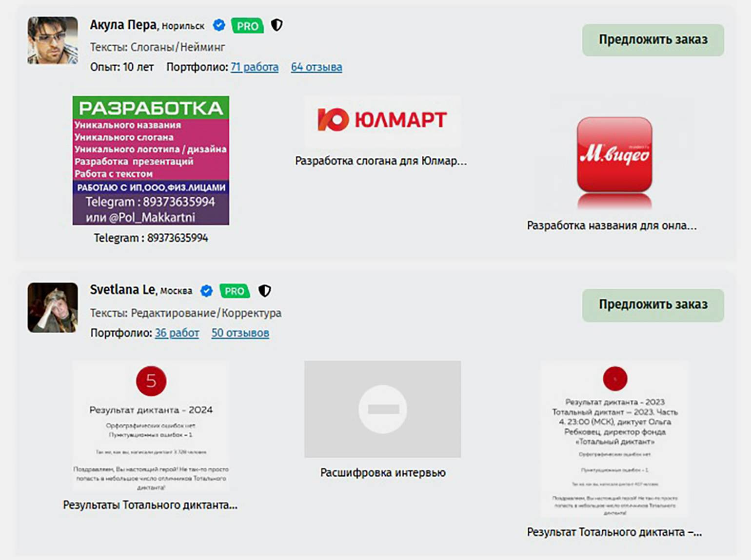 Размещение услуг. Можно размещать информацию о себе на разных площадках, чтобы её видели те, кто ищет авторов. Например, можно выложить объявление на «Авито», создать профиль в сервисе «Яндекс Исполнители» или сделать сайт-визитку.