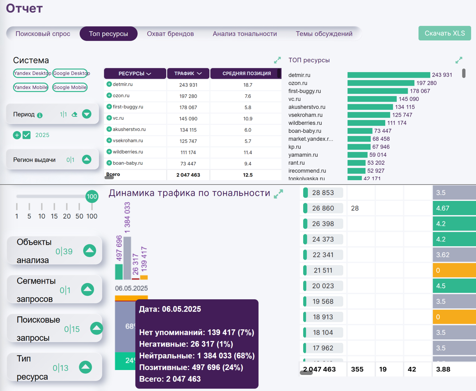 Для более глубокого анализа существуют профессиональные сервисы для анализа поисковой выдачи. Они позволяют определить долю вашего присутствия в выдаче по поисковым запросам, сравнить охват и аудиторию с конкурентами, проанализировать тональность публикаций и динамику упоминаний.