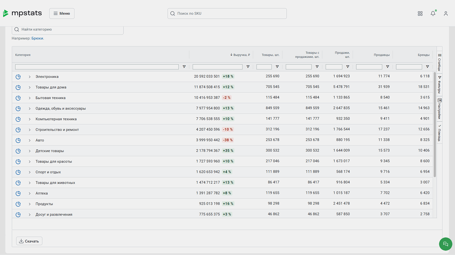 Скриншот: Mpstats / Skillbox Media