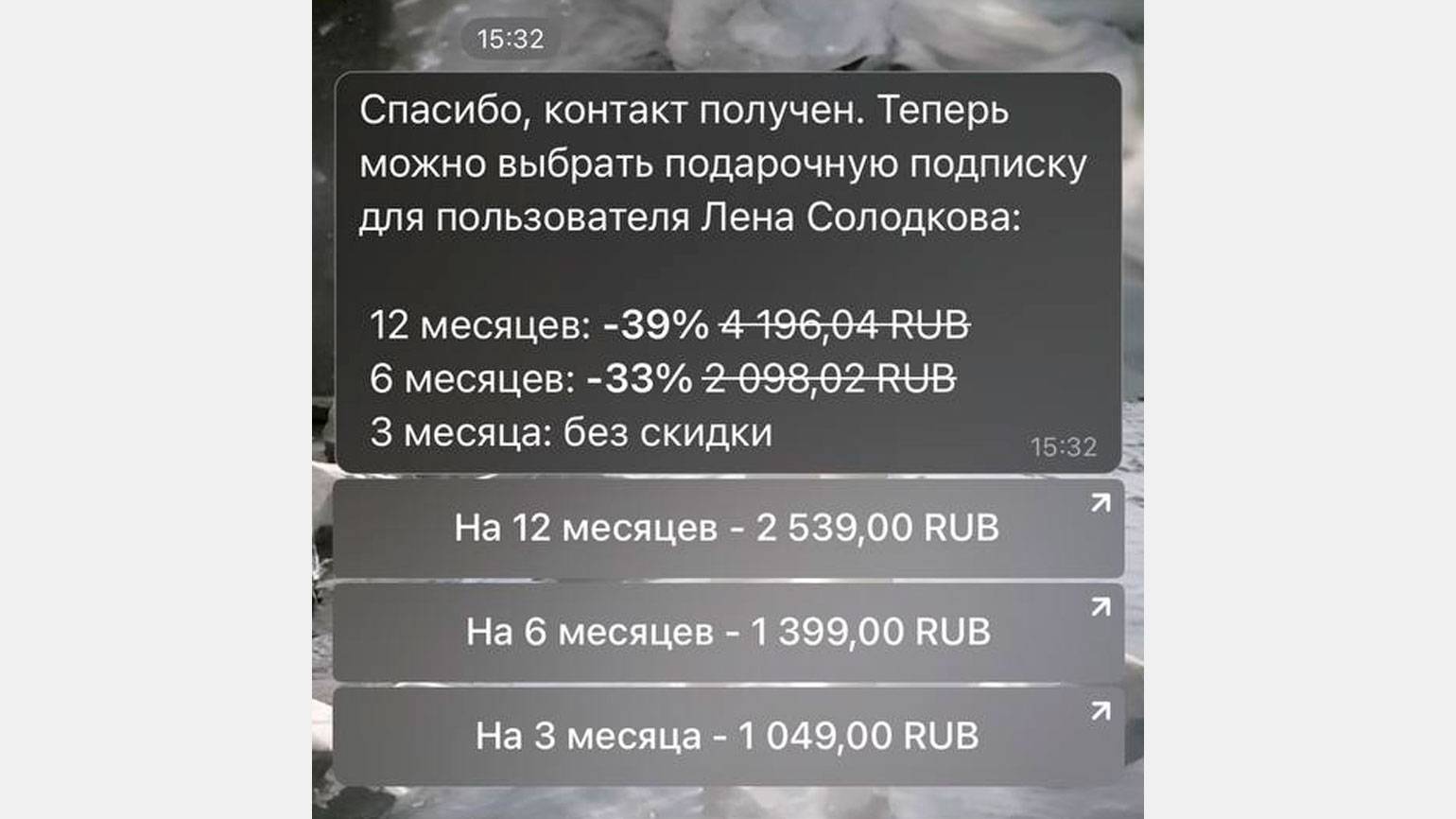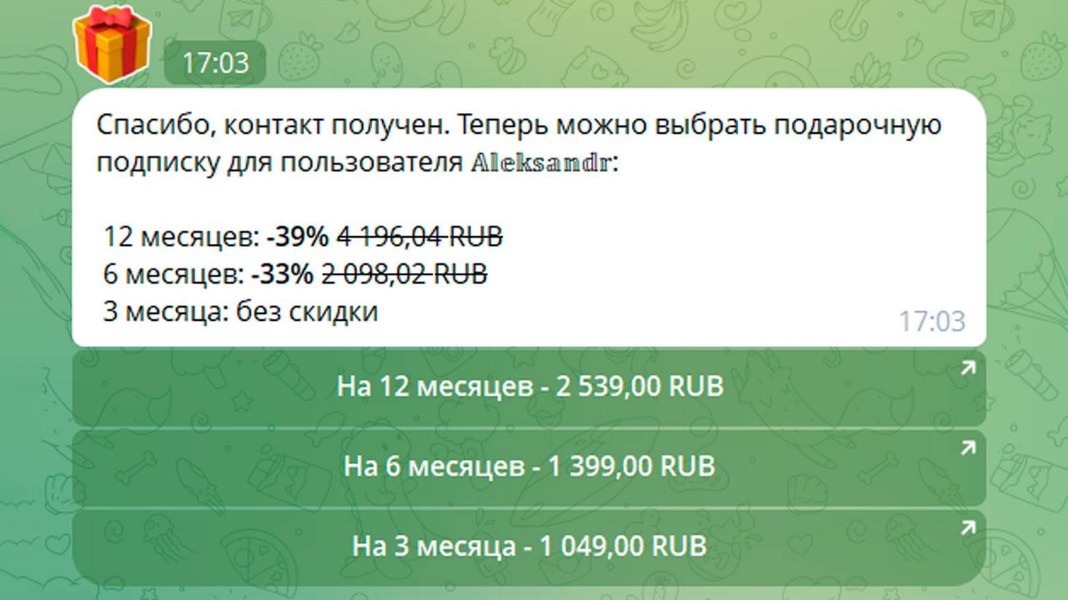 Также Telegram Premium можно подарить другому пользователю — в этом случае стоимость подписки такая: